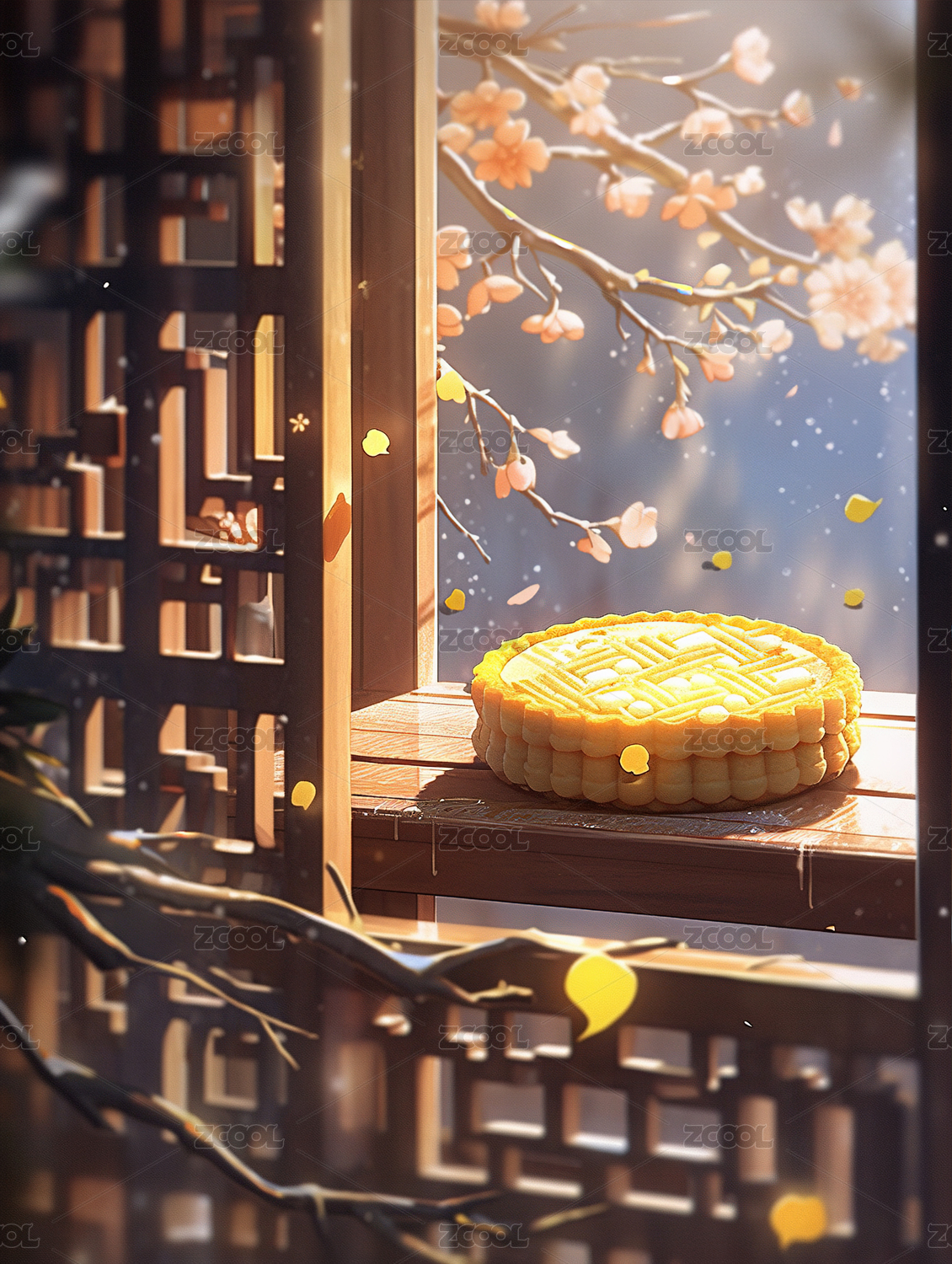 放置在窗边的月饼中秋节主题