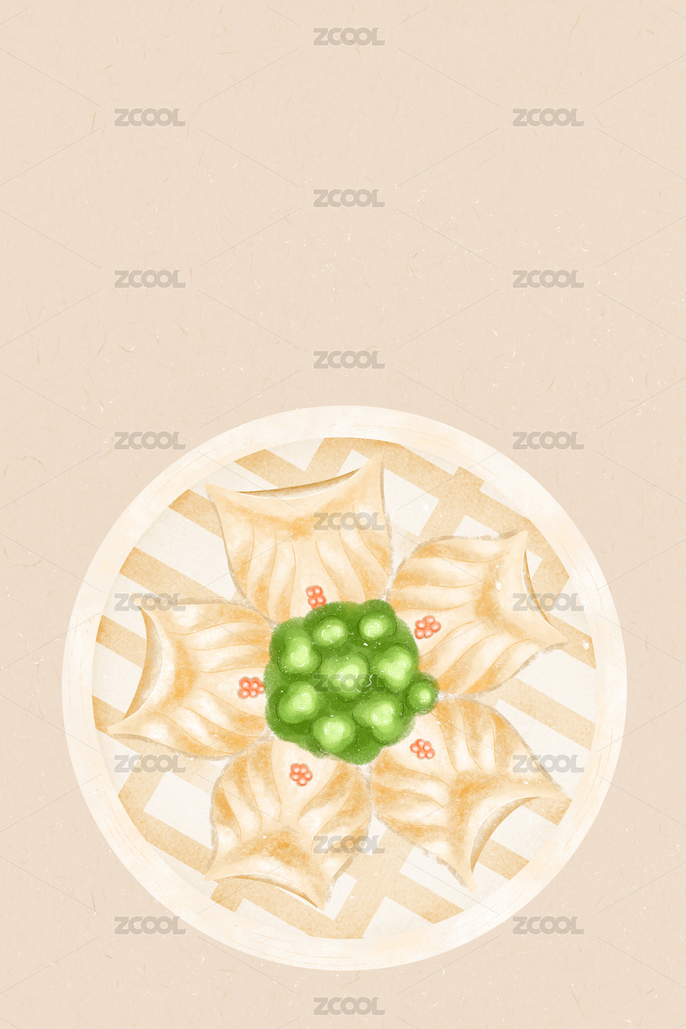 虾饺背景手绘美食插画
