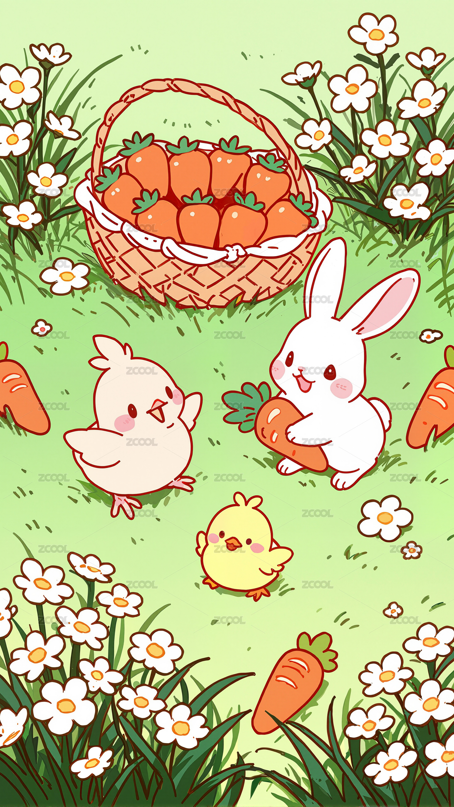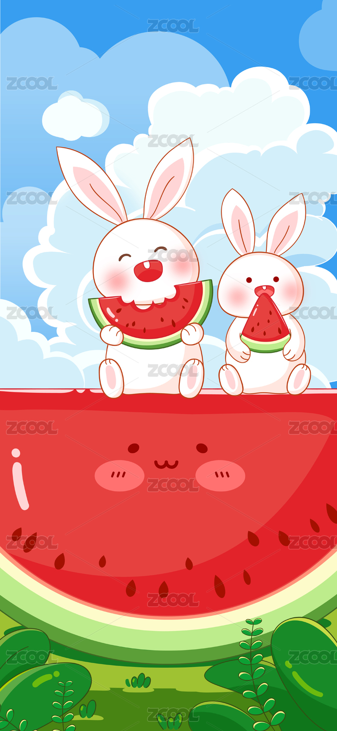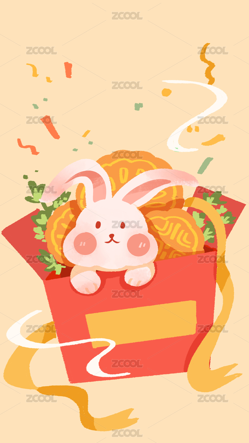 中秋节插画卡通风格的小朋友与玉兔在游乐园