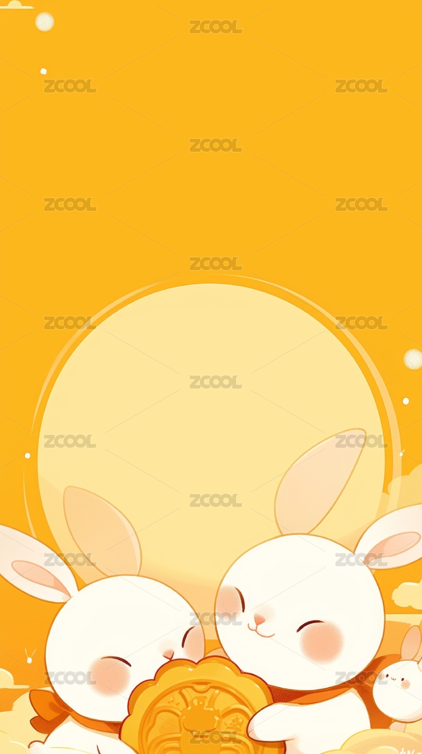 中秋节满月背景下正在吃月饼的可爱玉兔