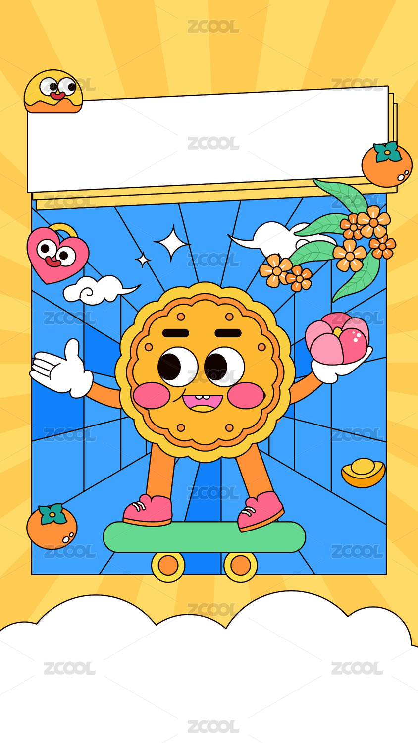 中秋节,月饼,扁平化设计,壁纸,描边,插画,传统节日,孟菲斯风格,背景,节日