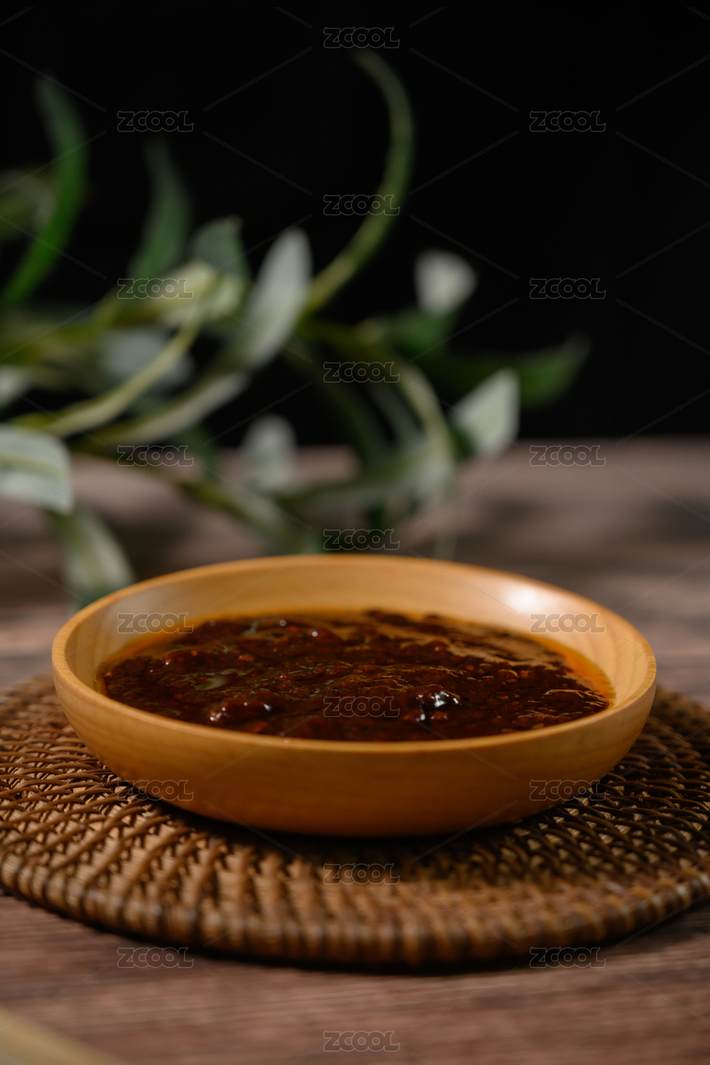 桌面上的盘子里的美味可口的炸酱