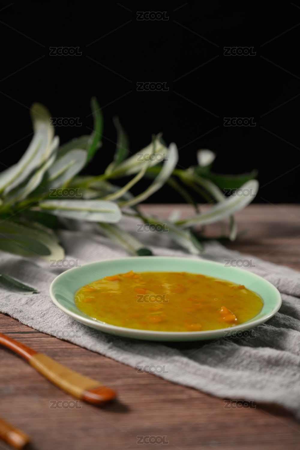 桌面上的盘子里的美味可口的芒果果酱