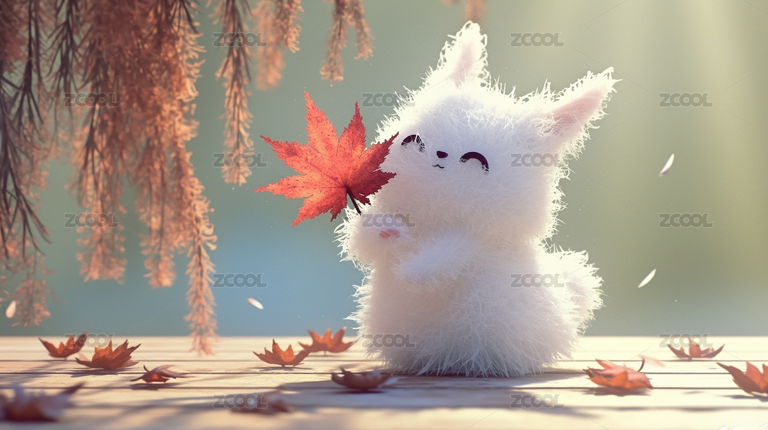 秋天,小动物,毛绒玩具,枫叶,落叶