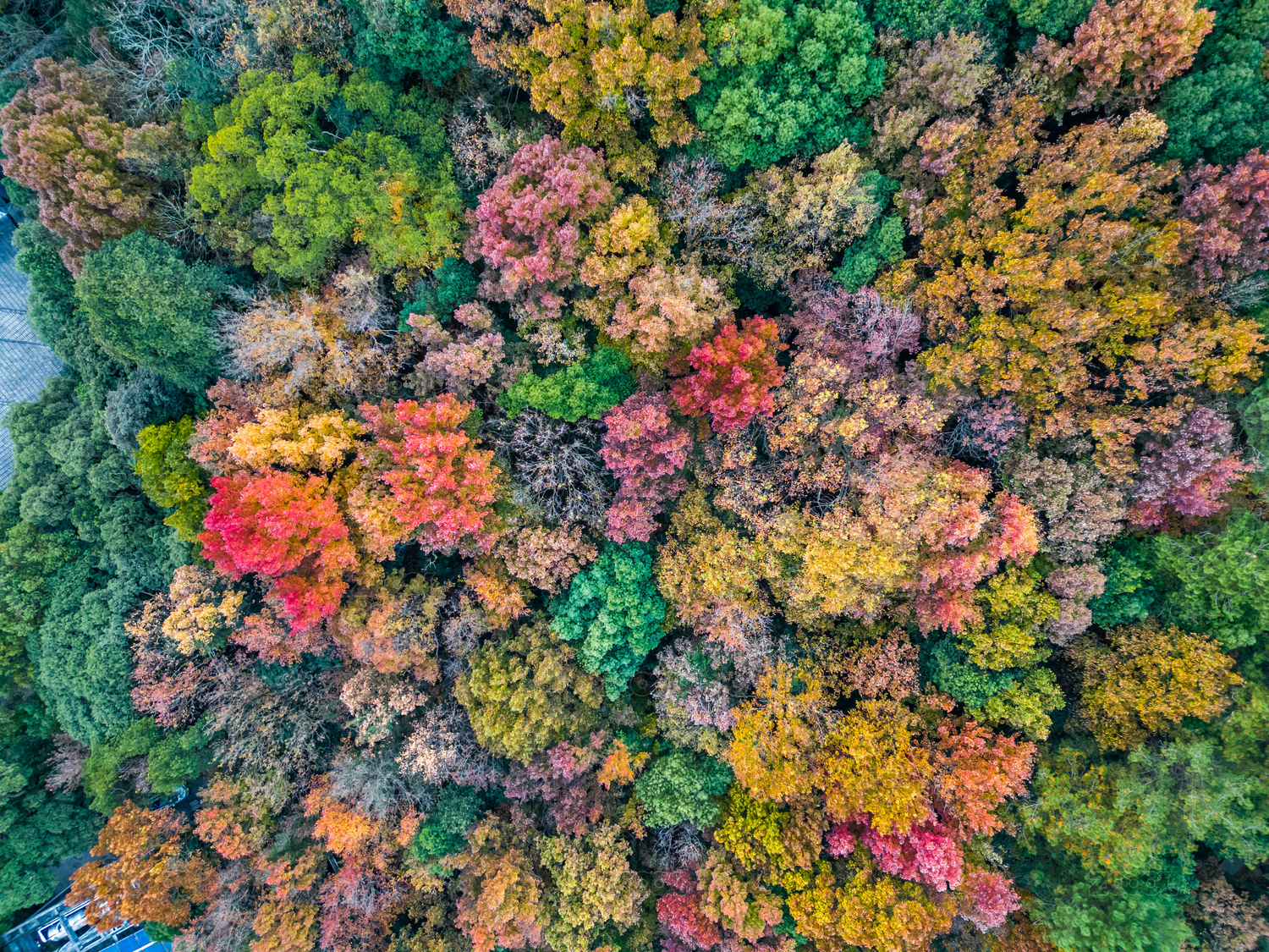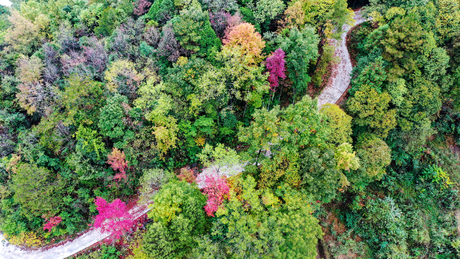 中国山东枣庄山亭区国有林场层林尽染秋景美