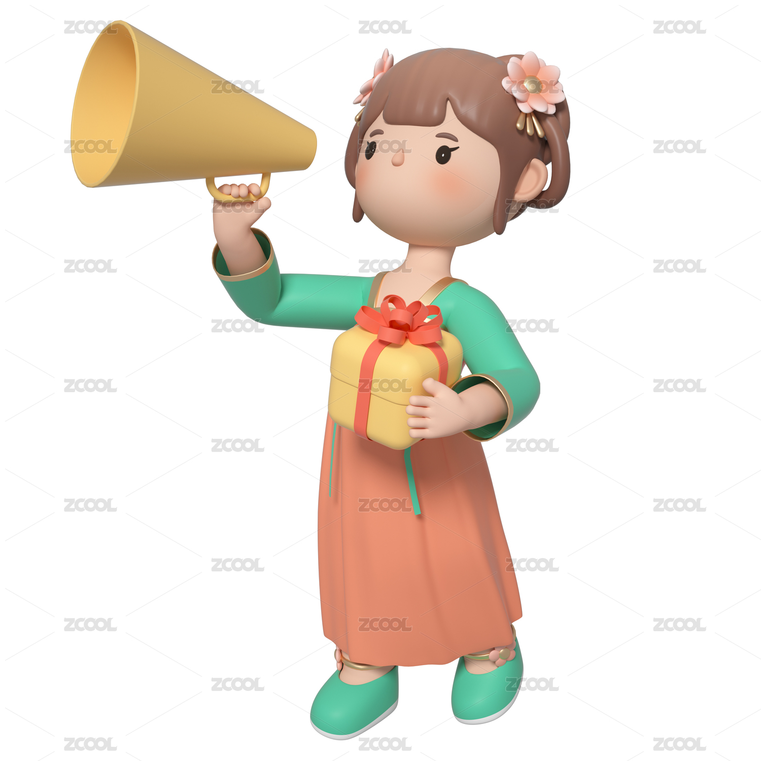 女人,三维图形,插画,卡通,童年,3D,立体,三维,古风,国潮