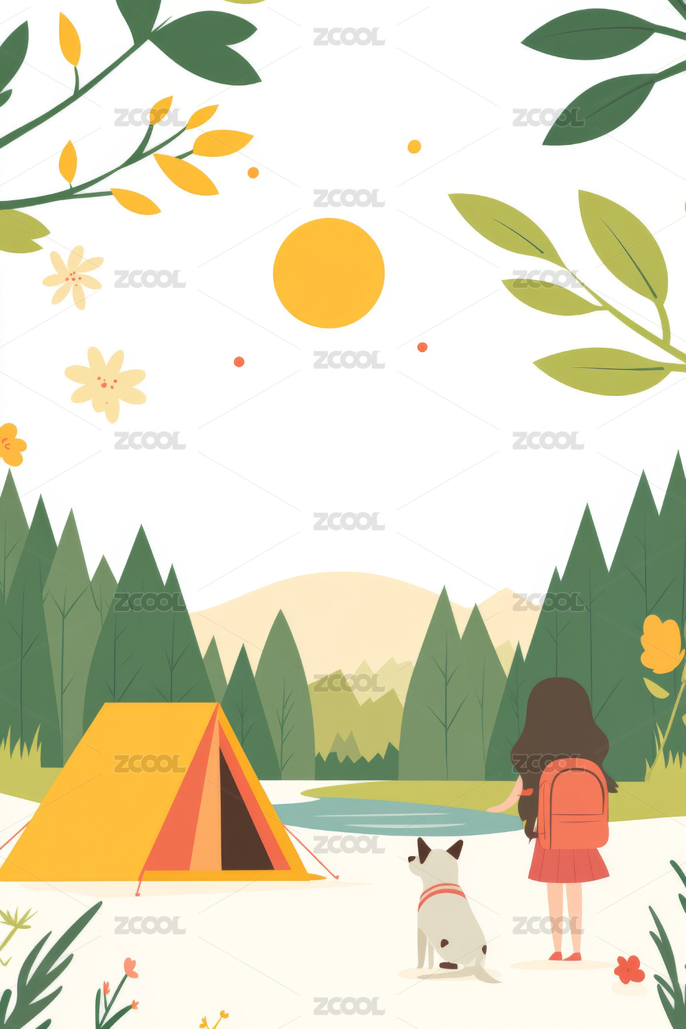 春日郊外露营插画背景
