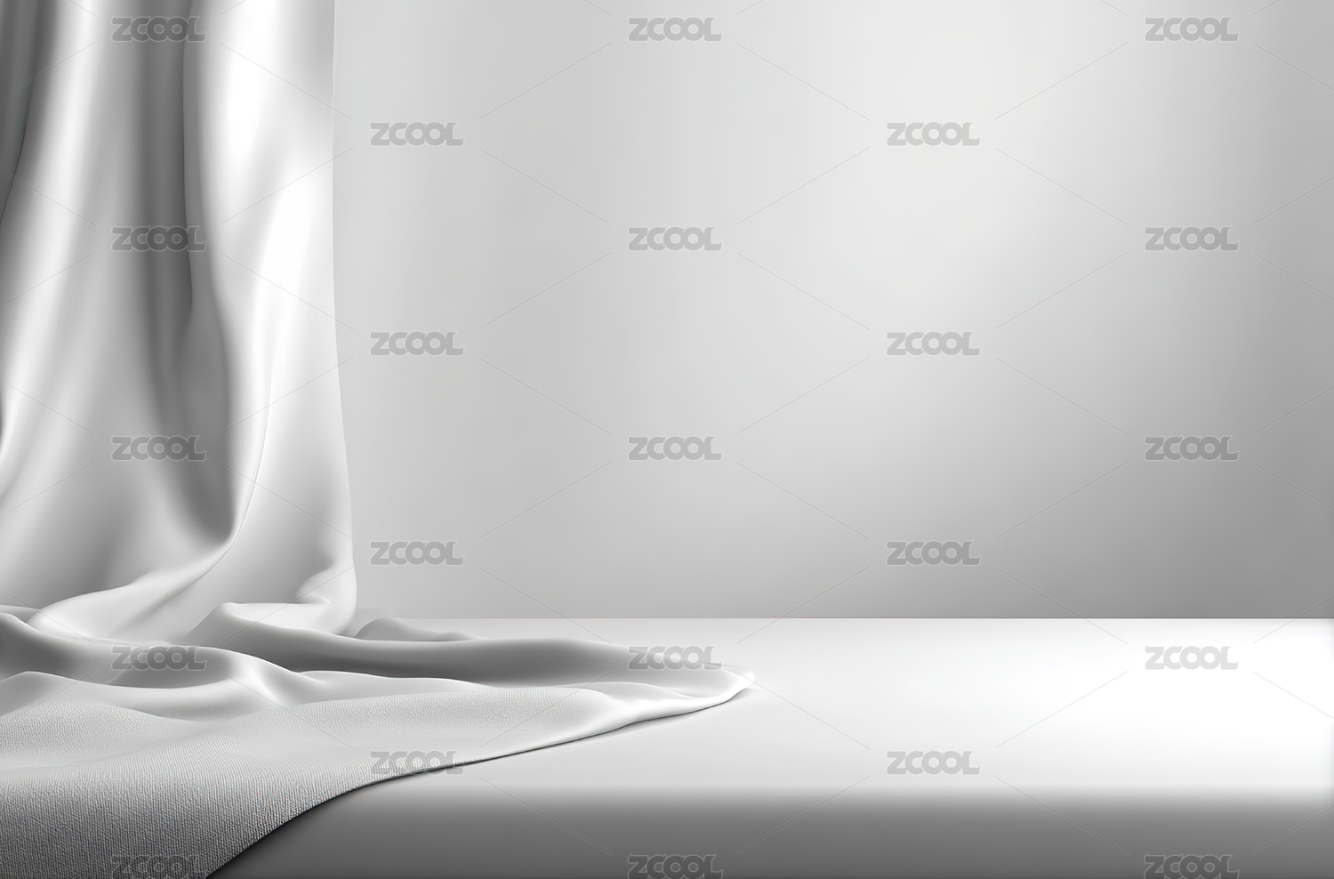 白色布幕下的产品展示台