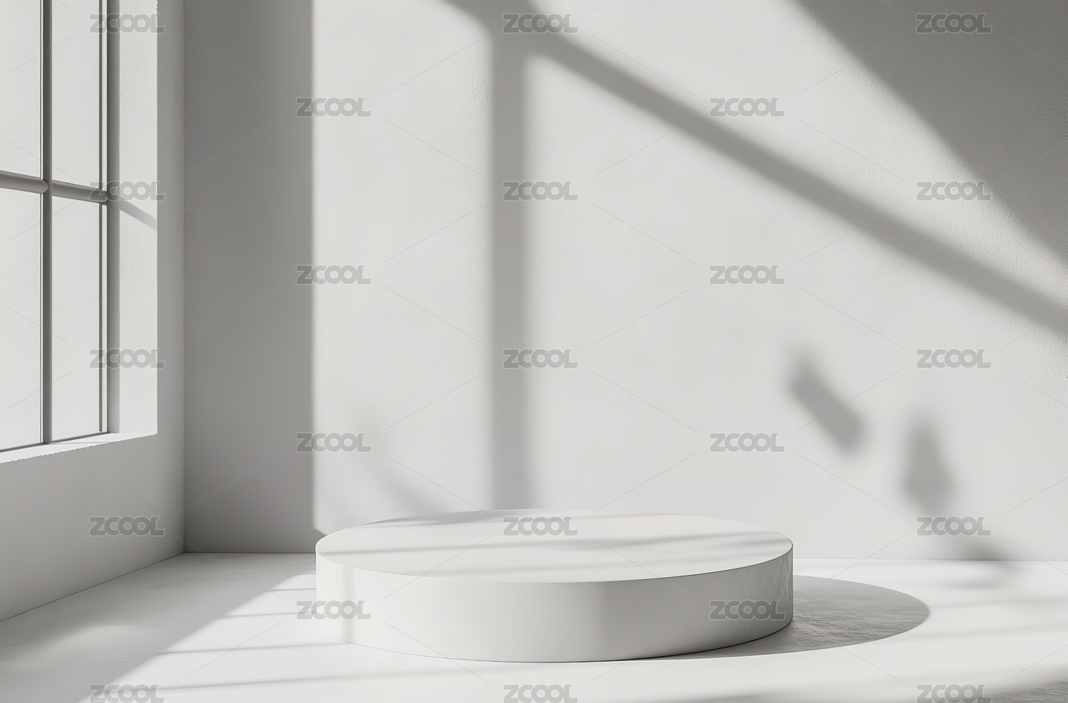 阳光,白色,极简主义,圆柱形,展示台,阴影,室内,现代,设计,简洁