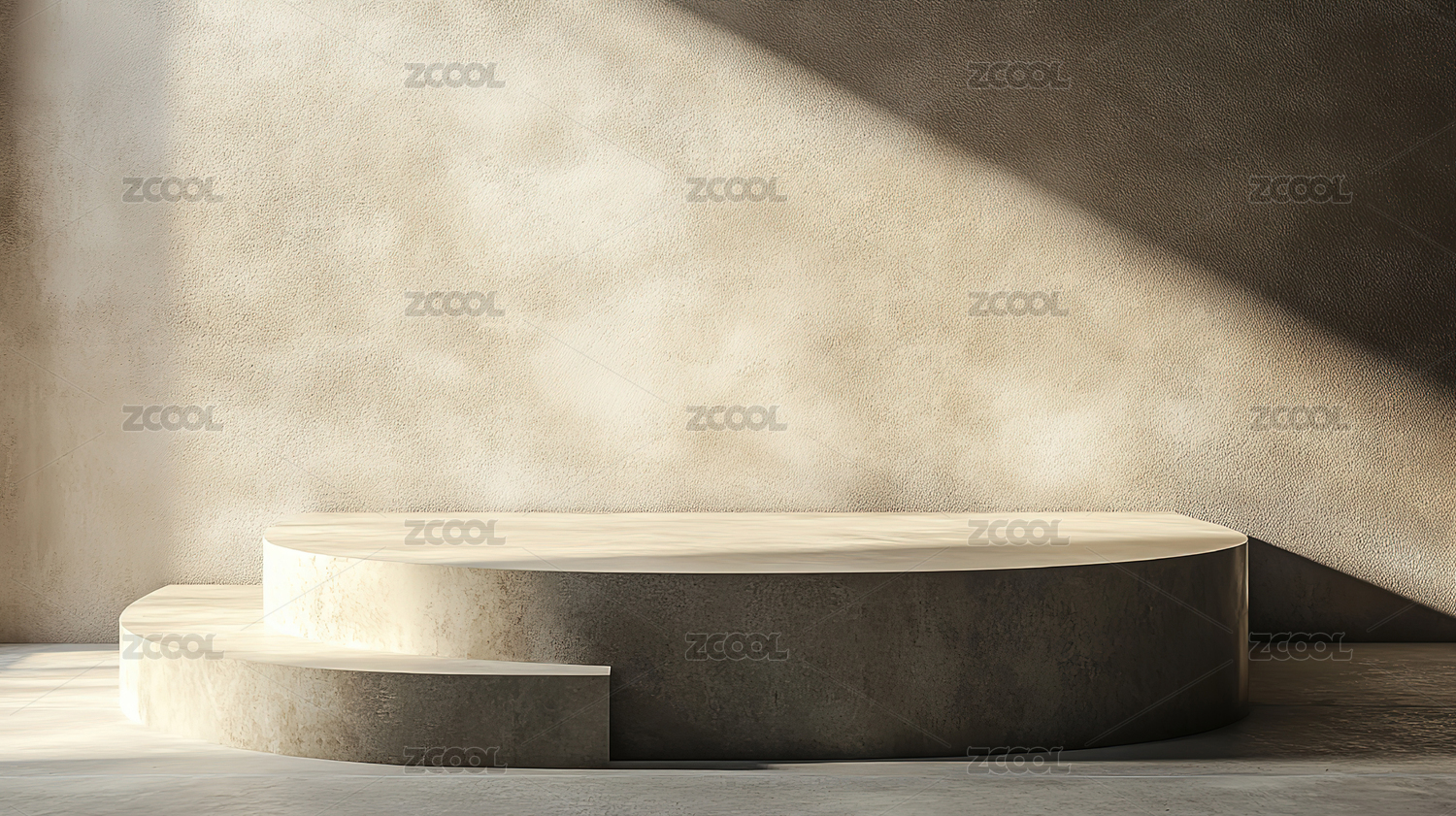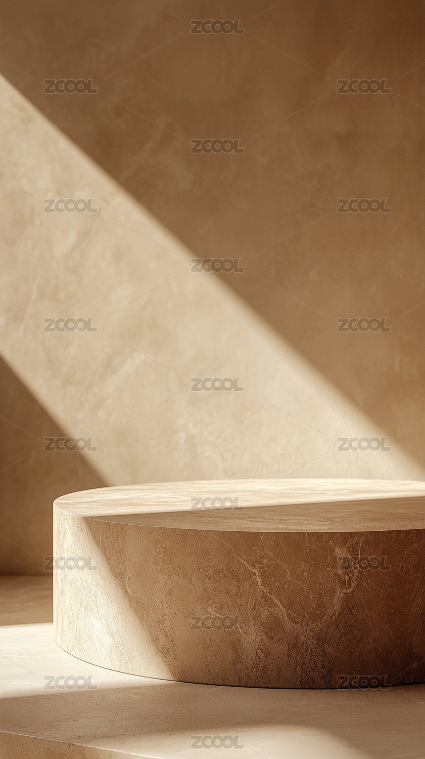 米色质感空间石头展台光影插画