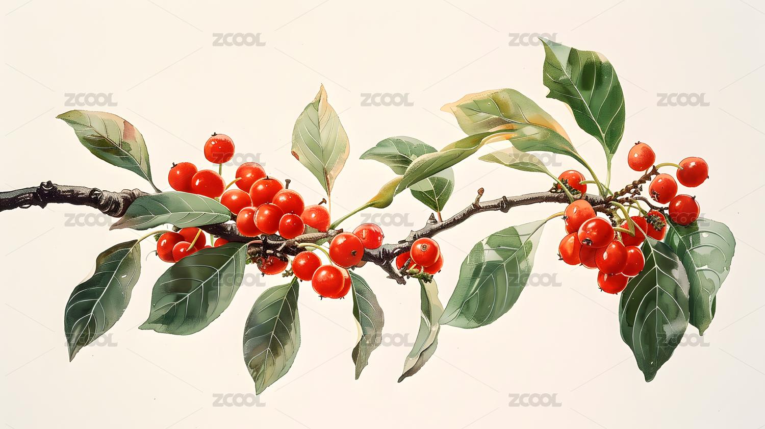 红色浆果与绿叶主题