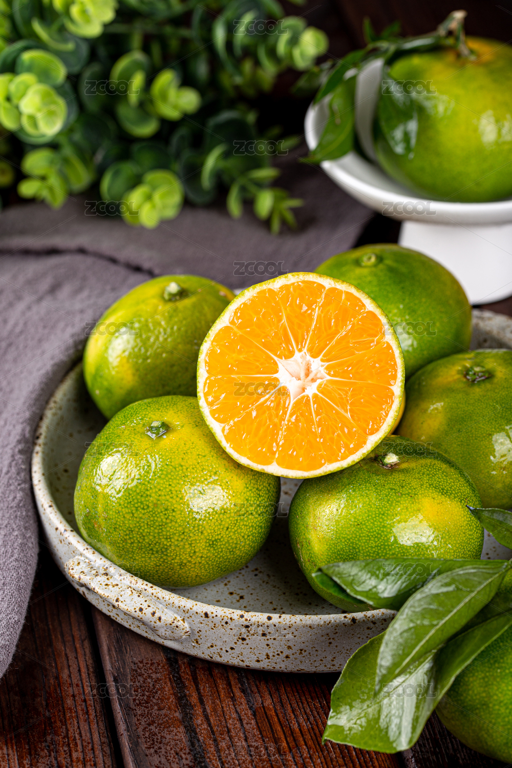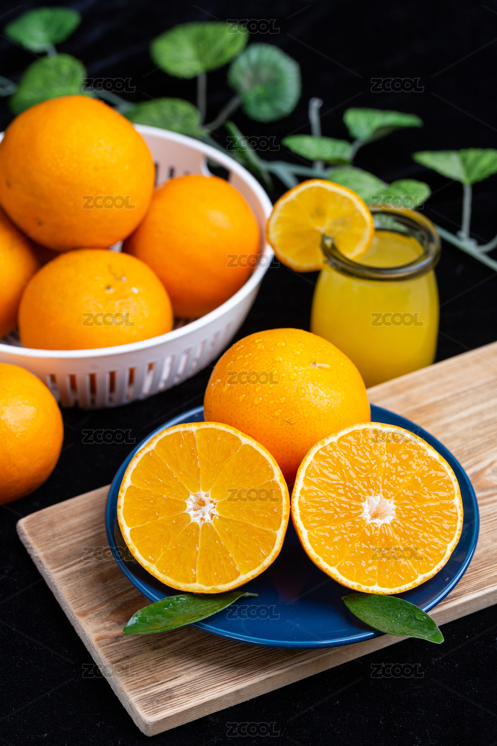 木桌上的水果橙子素材