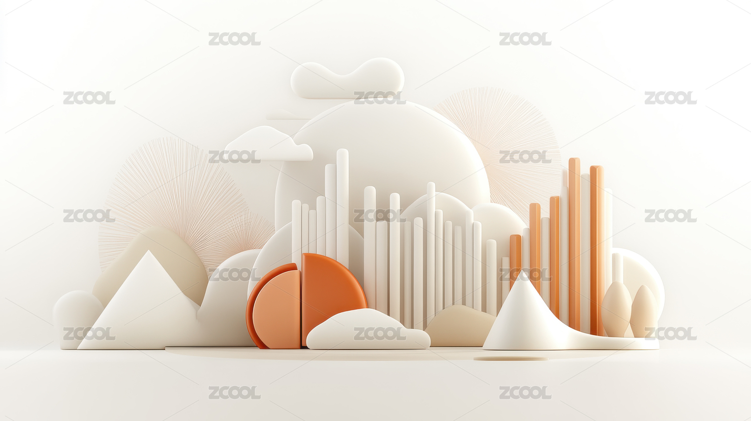 柱状图,展示,白色,设计,现代,云朵,装饰,创意,艺术,结构