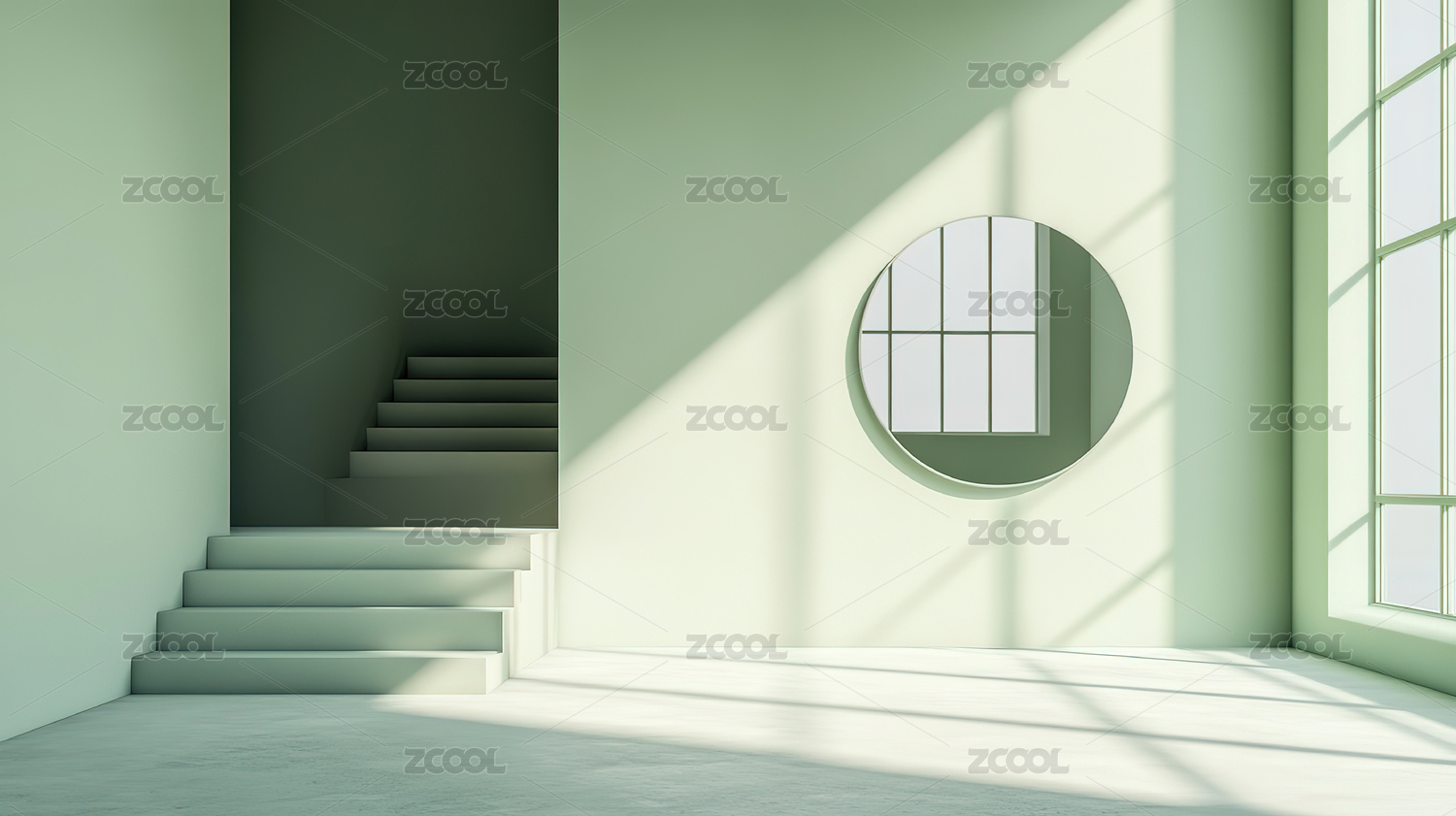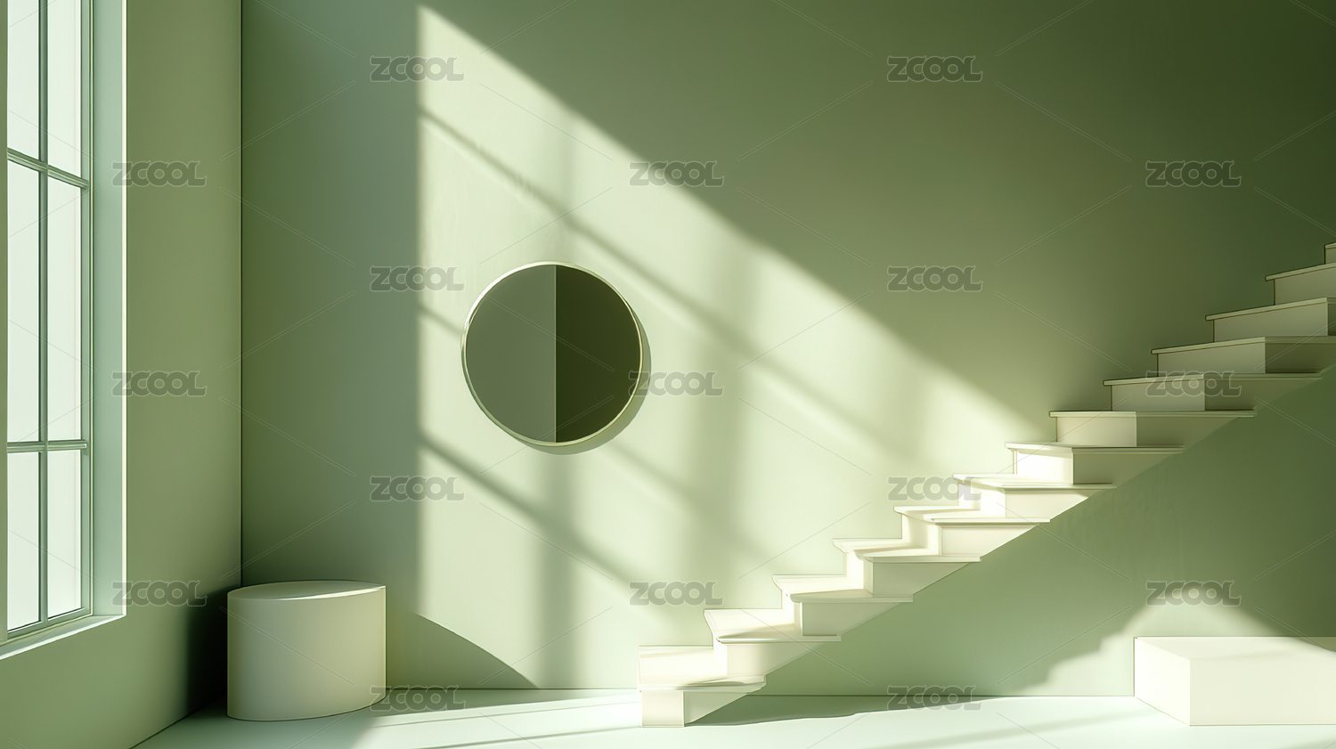 绿色的空展台,极简光影拍摄展示基座