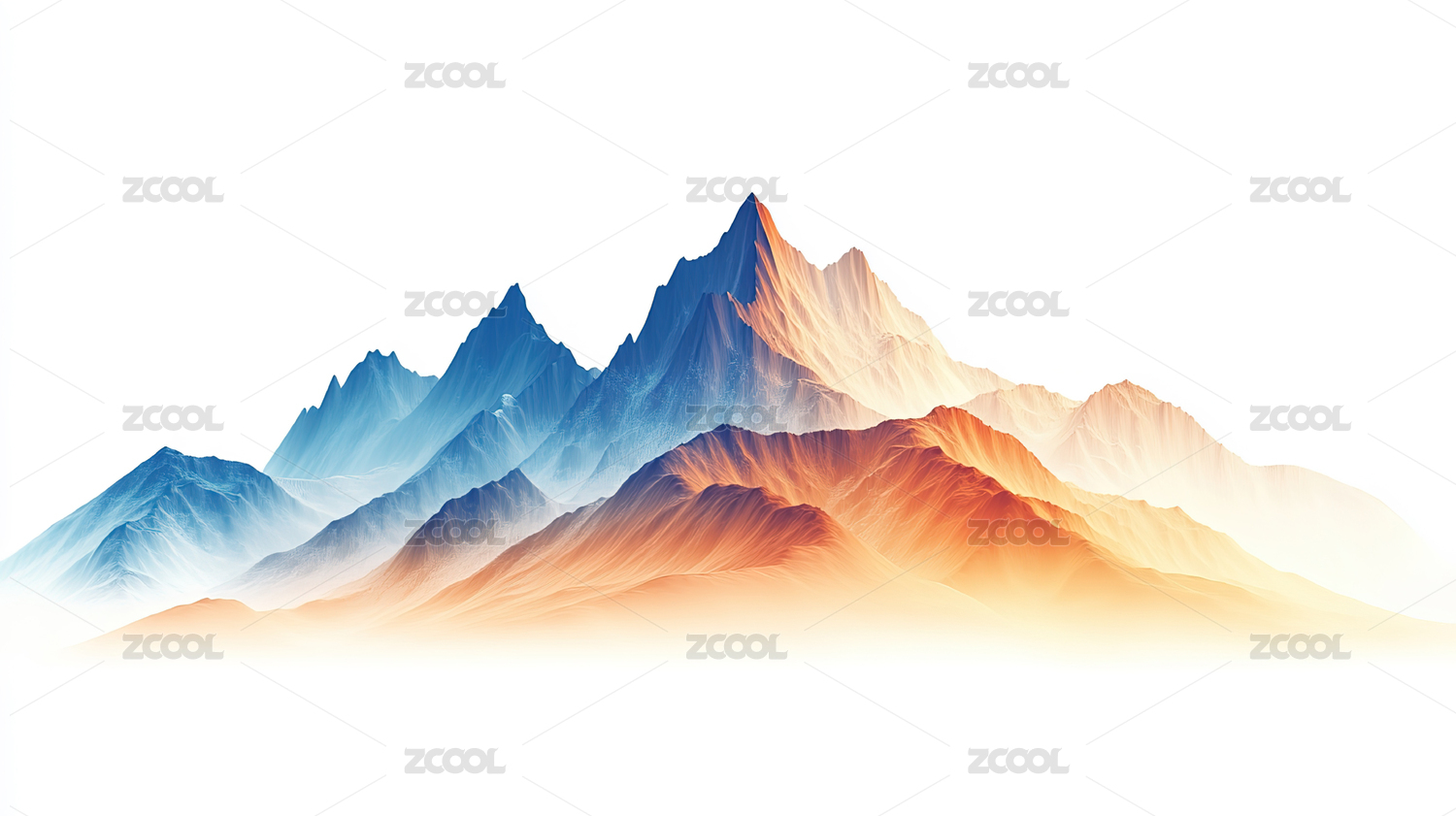 蓝色橙色渐变背景三座山峰的简单矢量插画
