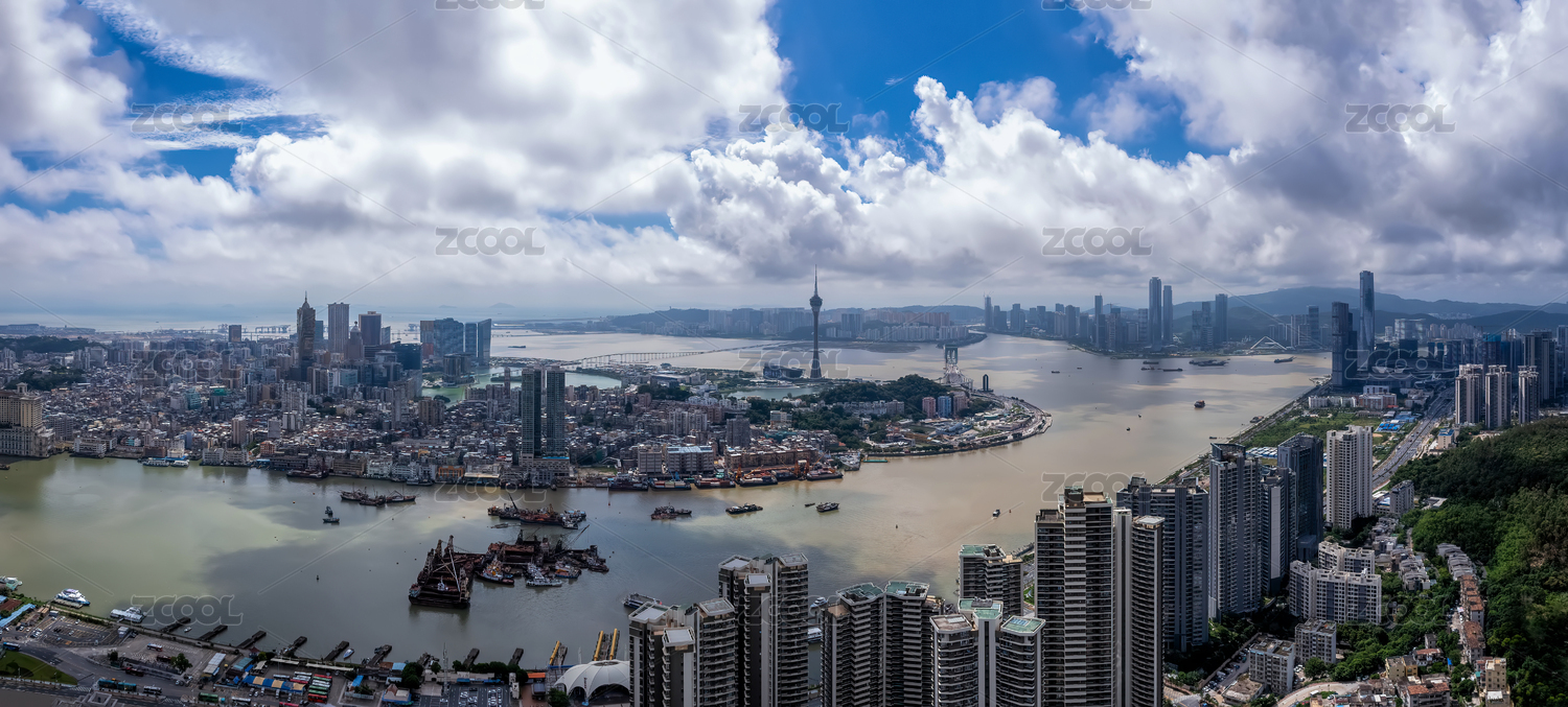 澳门现代城市天际线高视角全景
