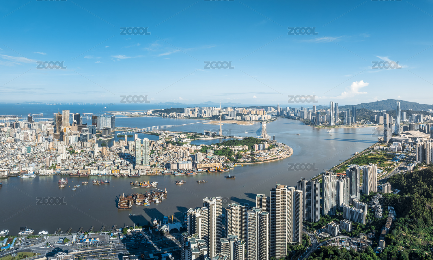 中国珠海与澳门海湾航拍风光