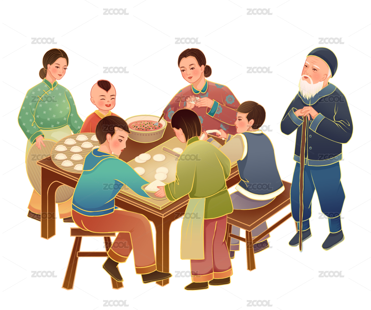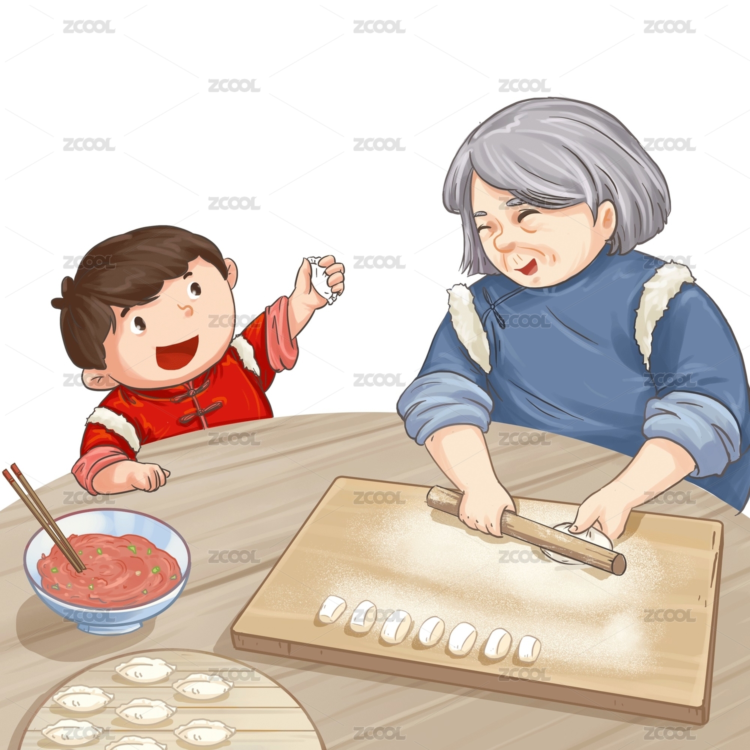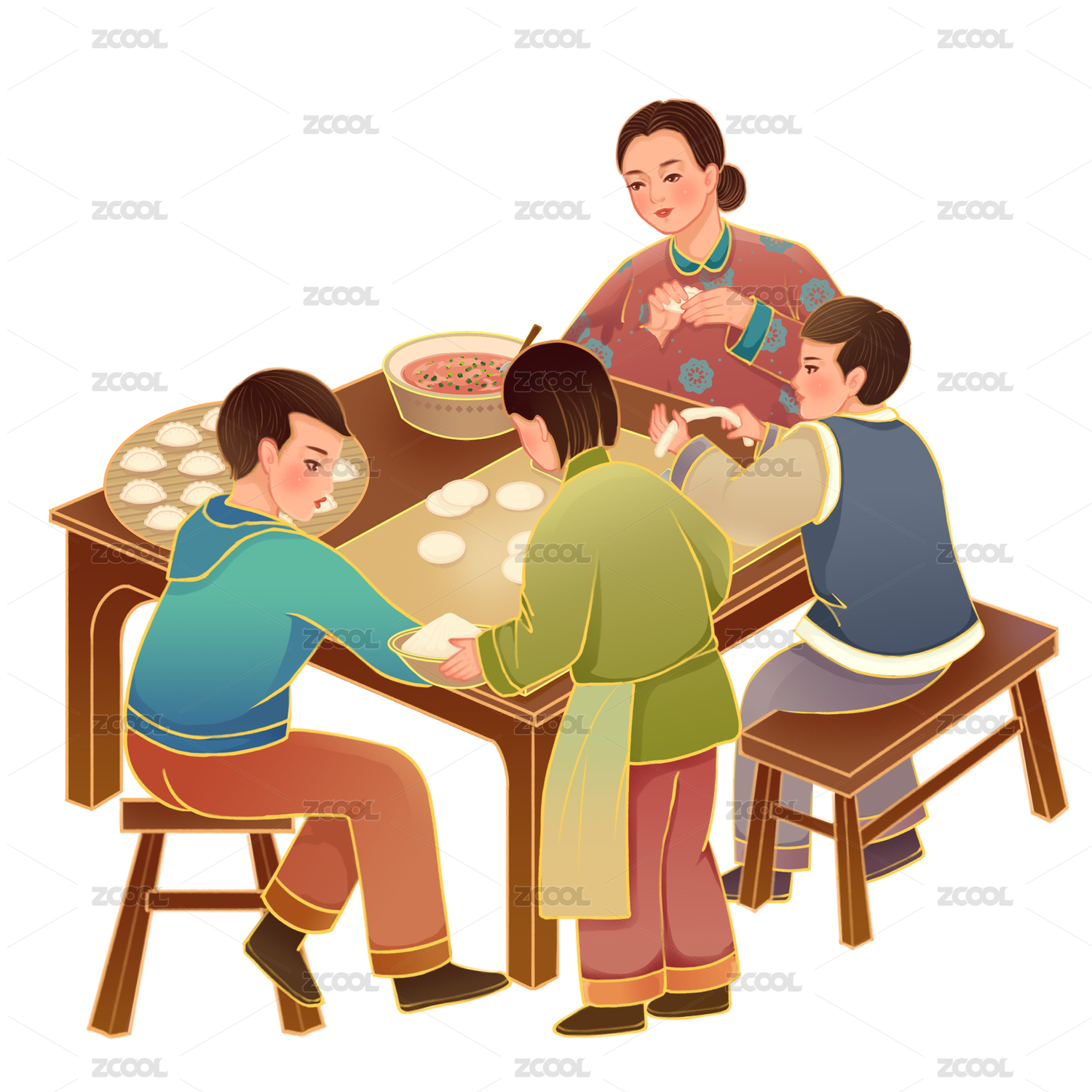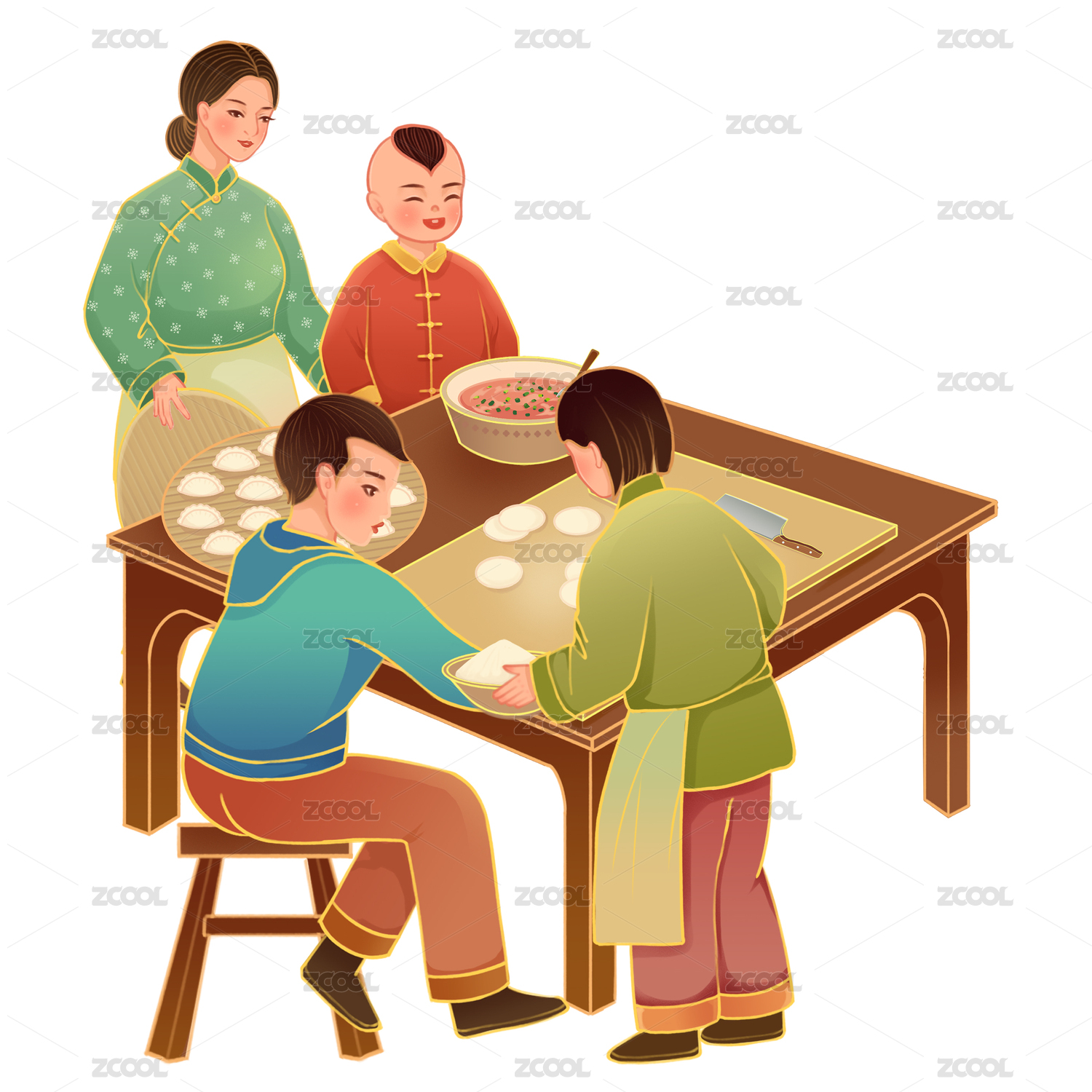 卡通冬至立冬元宵节春节包饺子矢量插画