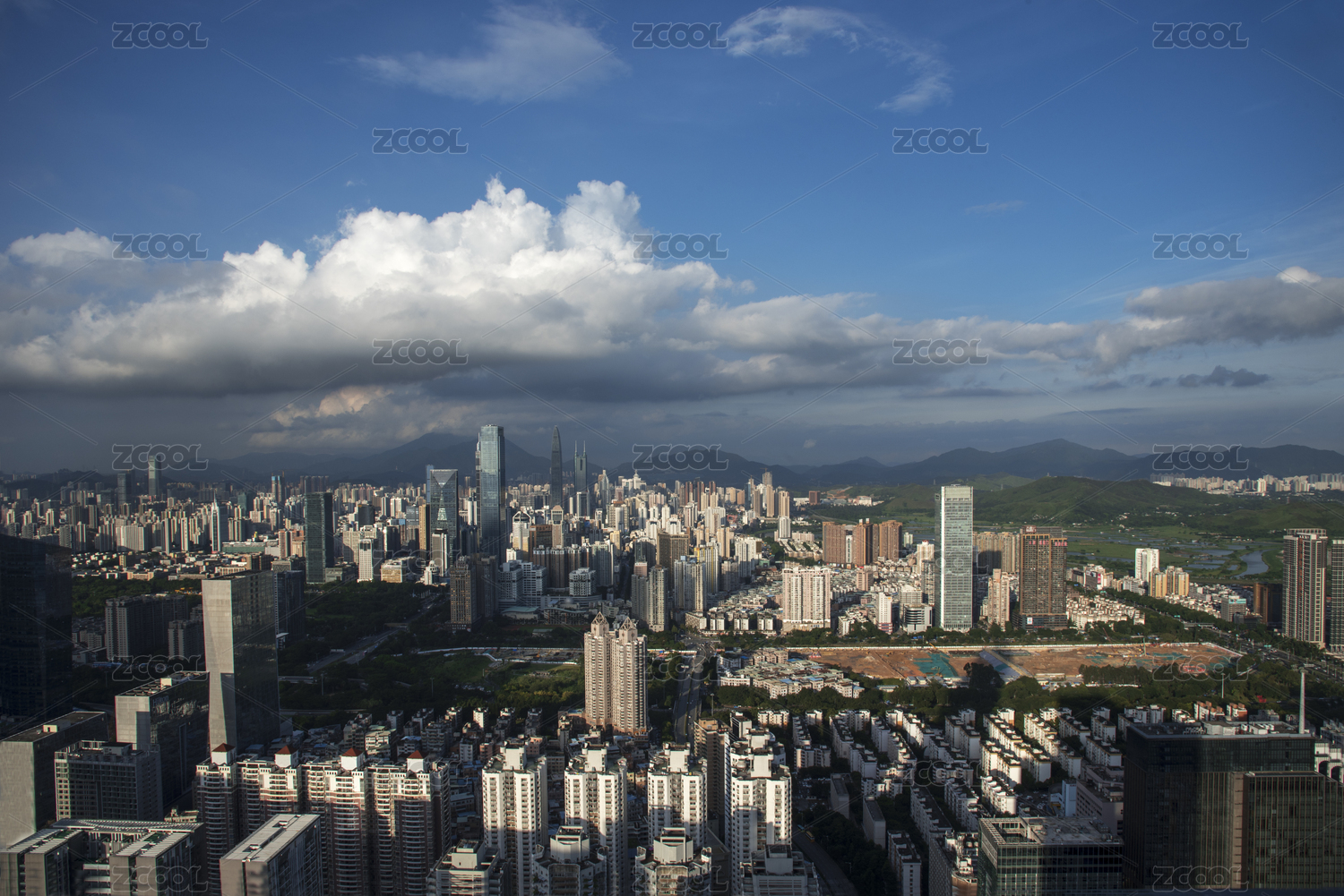 中国广东省深圳城市天际线建筑群高楼大厦景观