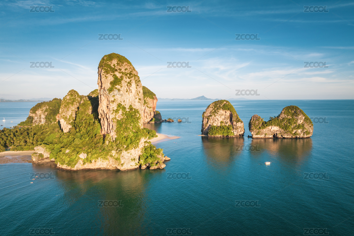 泰国甲米蔚蓝海面上几座喀斯特地貌的小岛