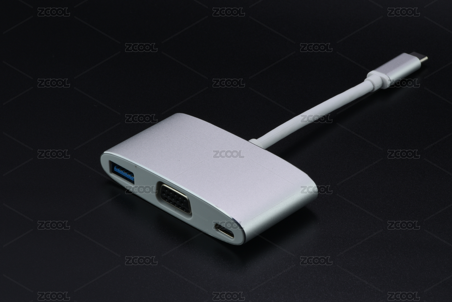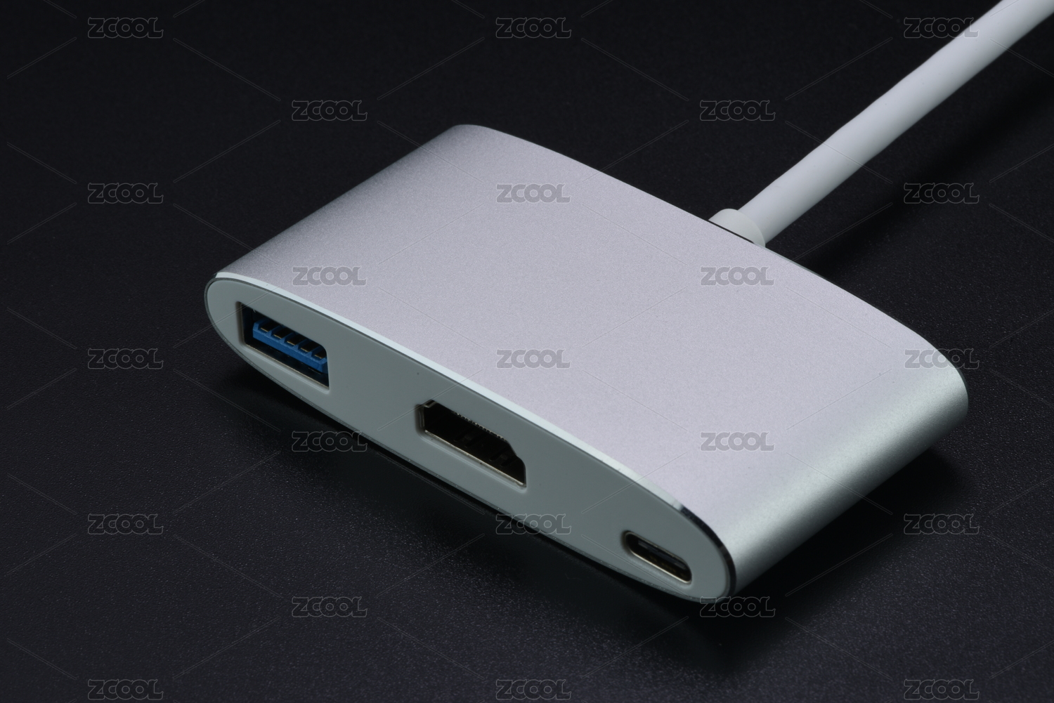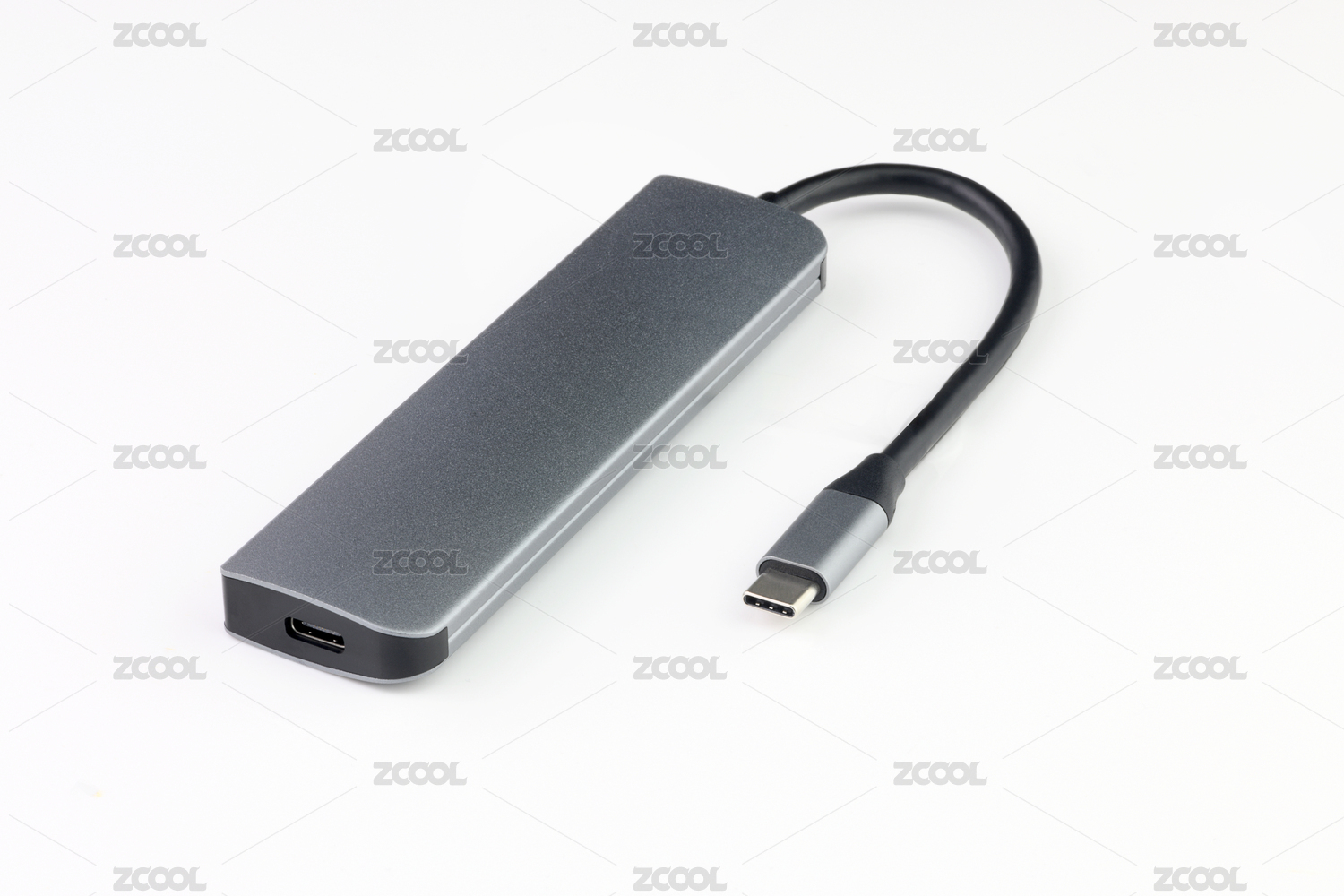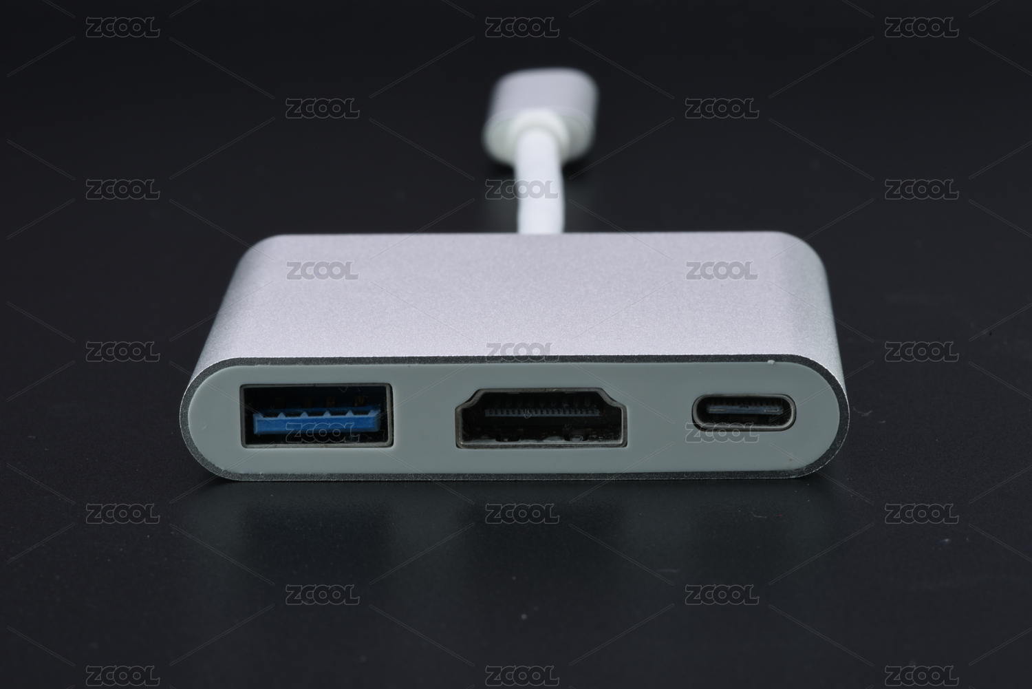 灰底银色磨砂金属TypeC转接头HUB