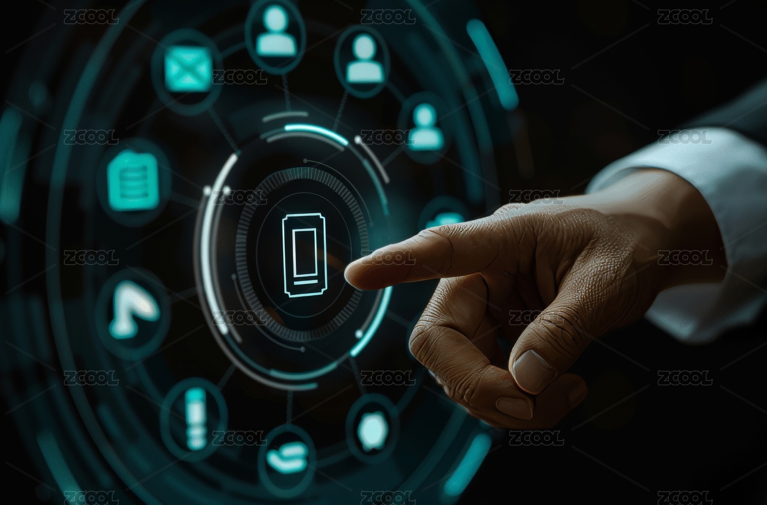 商务人士手指触摸数字平板电脑屏幕备忘录的