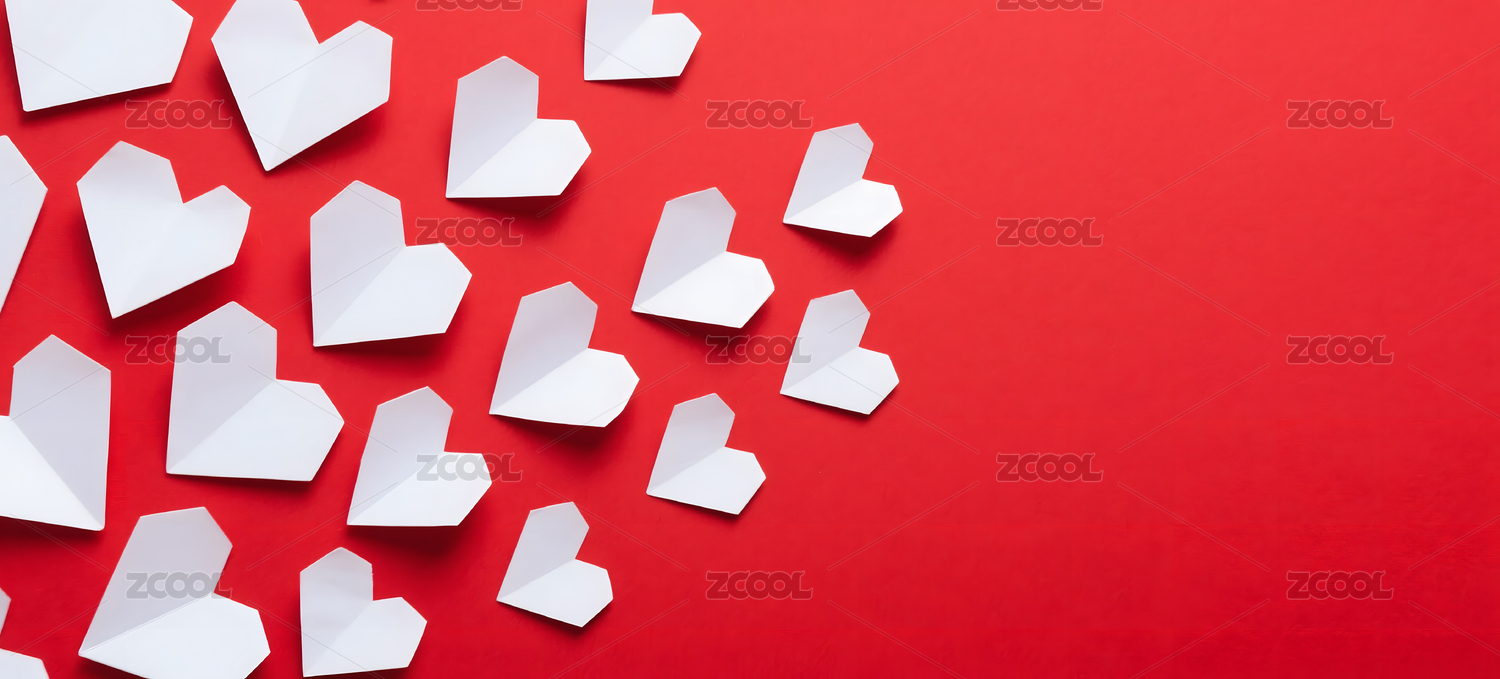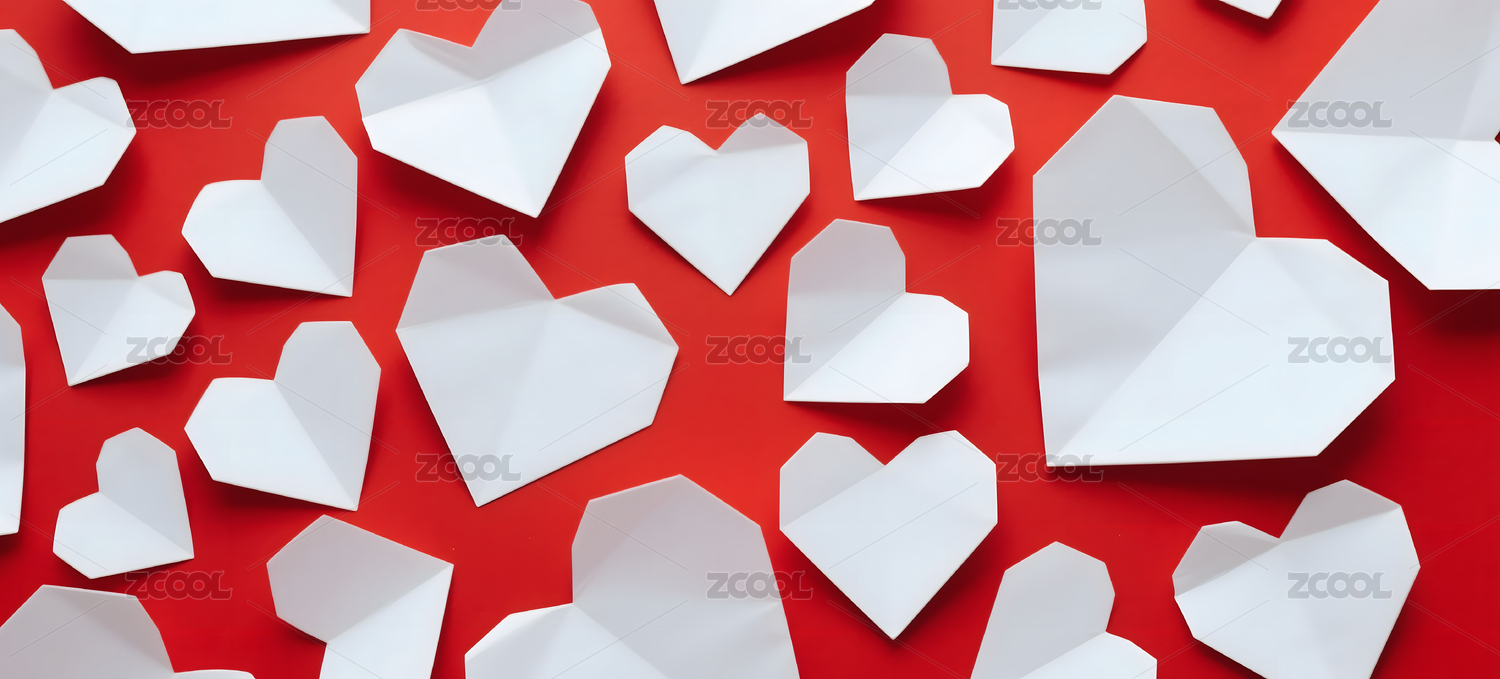 红色背景上的白色纸质心形图案