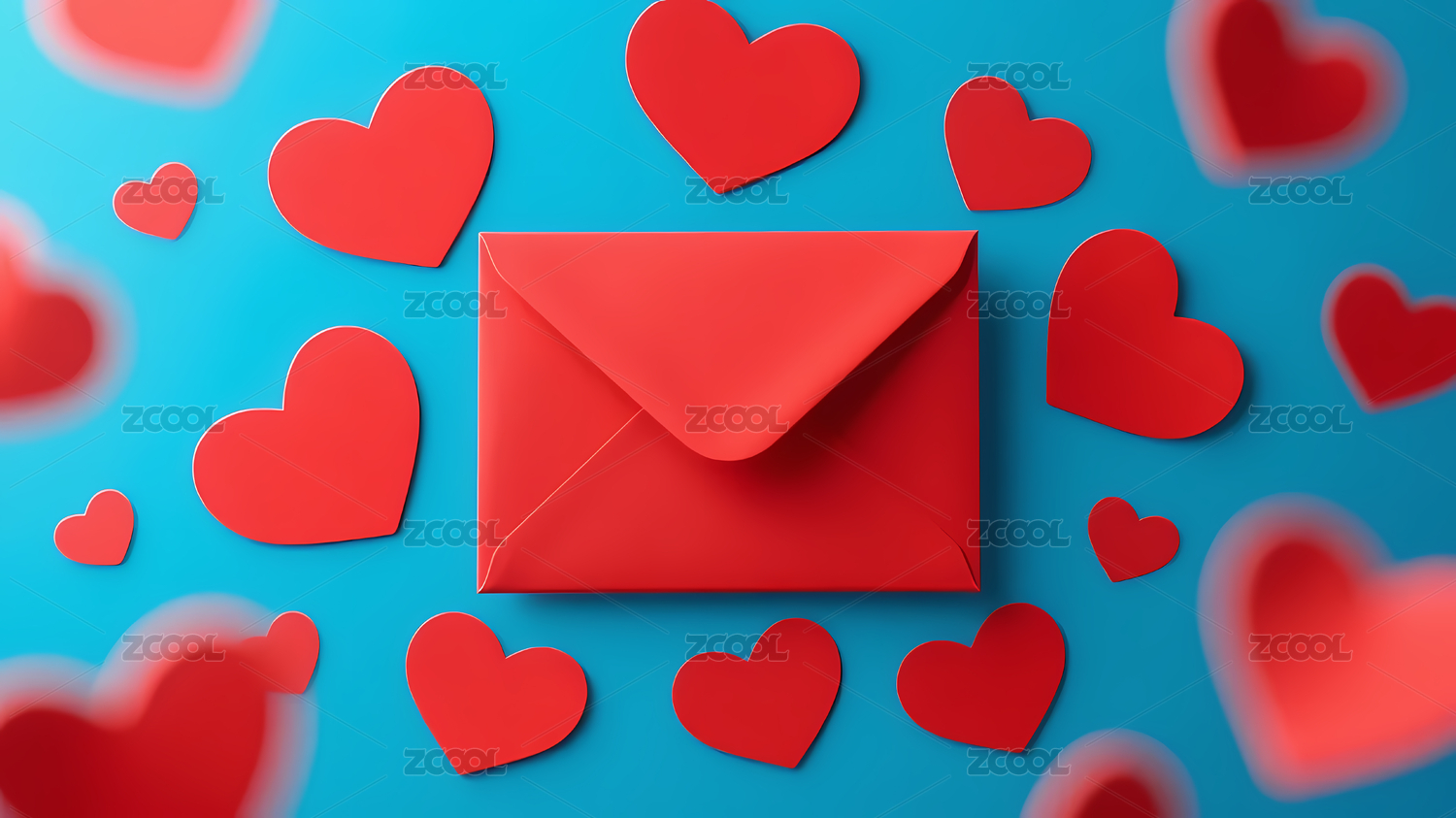 浪漫红色信封与心形图案