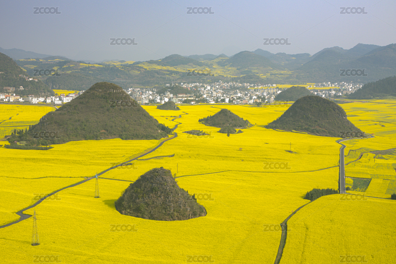 中国云南罗平金鸡峰下的油菜花