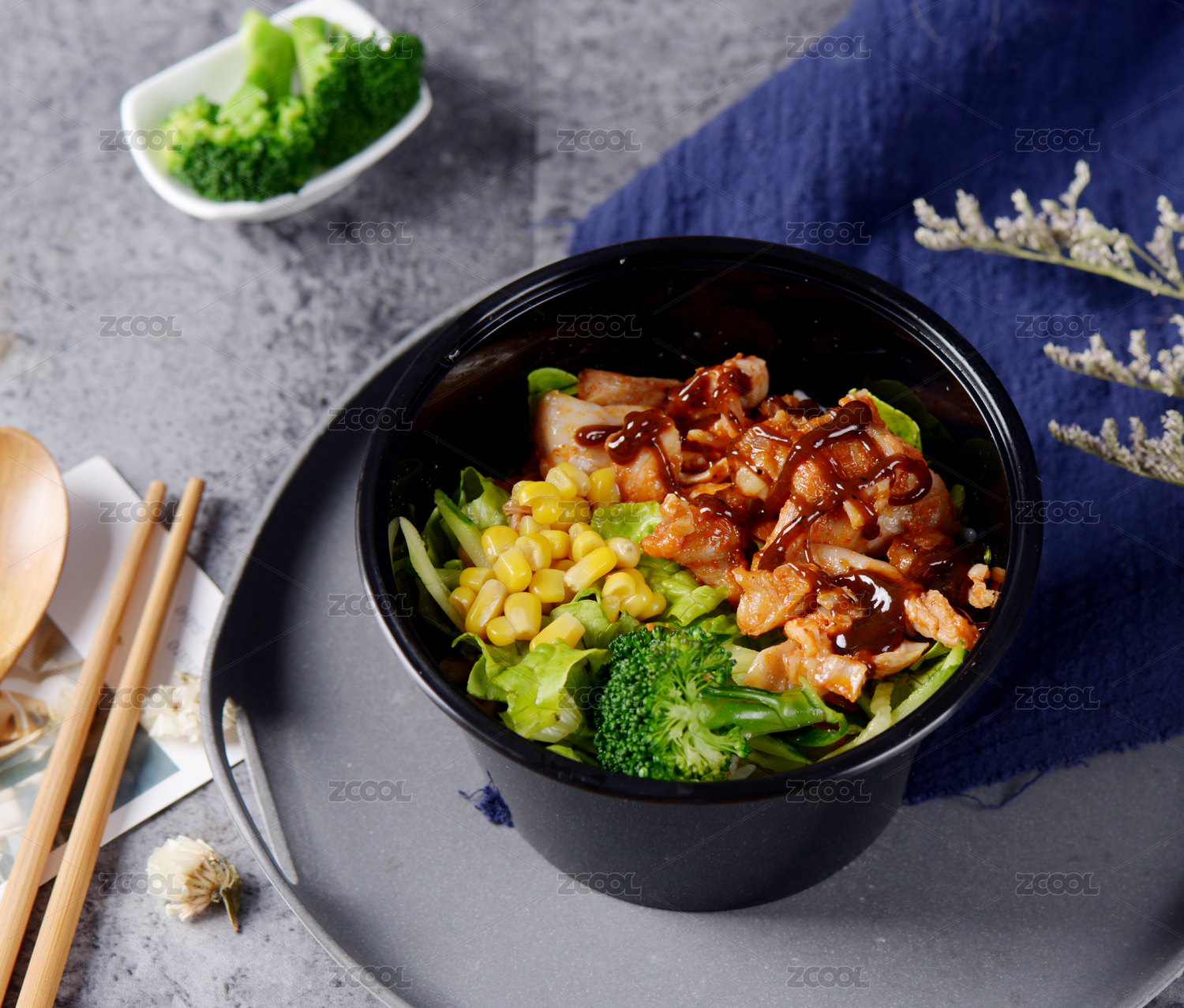 粉色桌上大碗里的水煮麻辣肉片干拌面