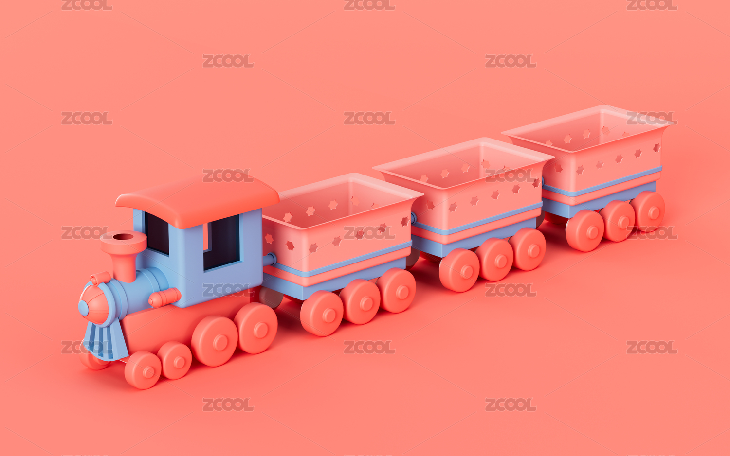 3D,插画,背景,粉色,交通,卡通,工业,旅游,旅行,火车