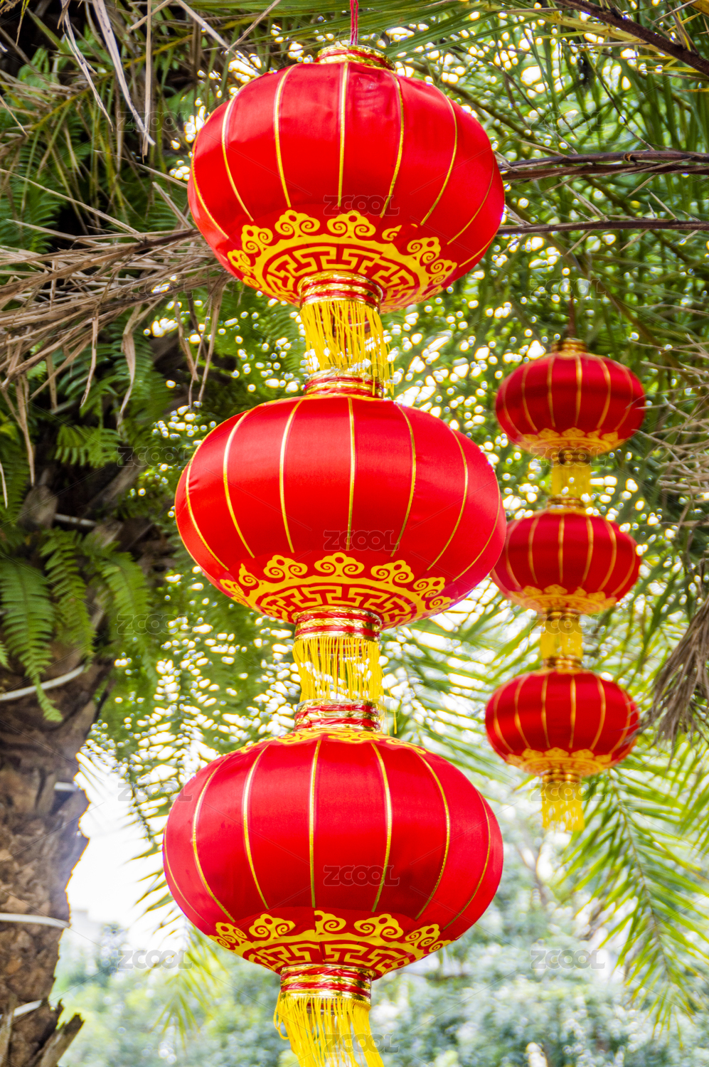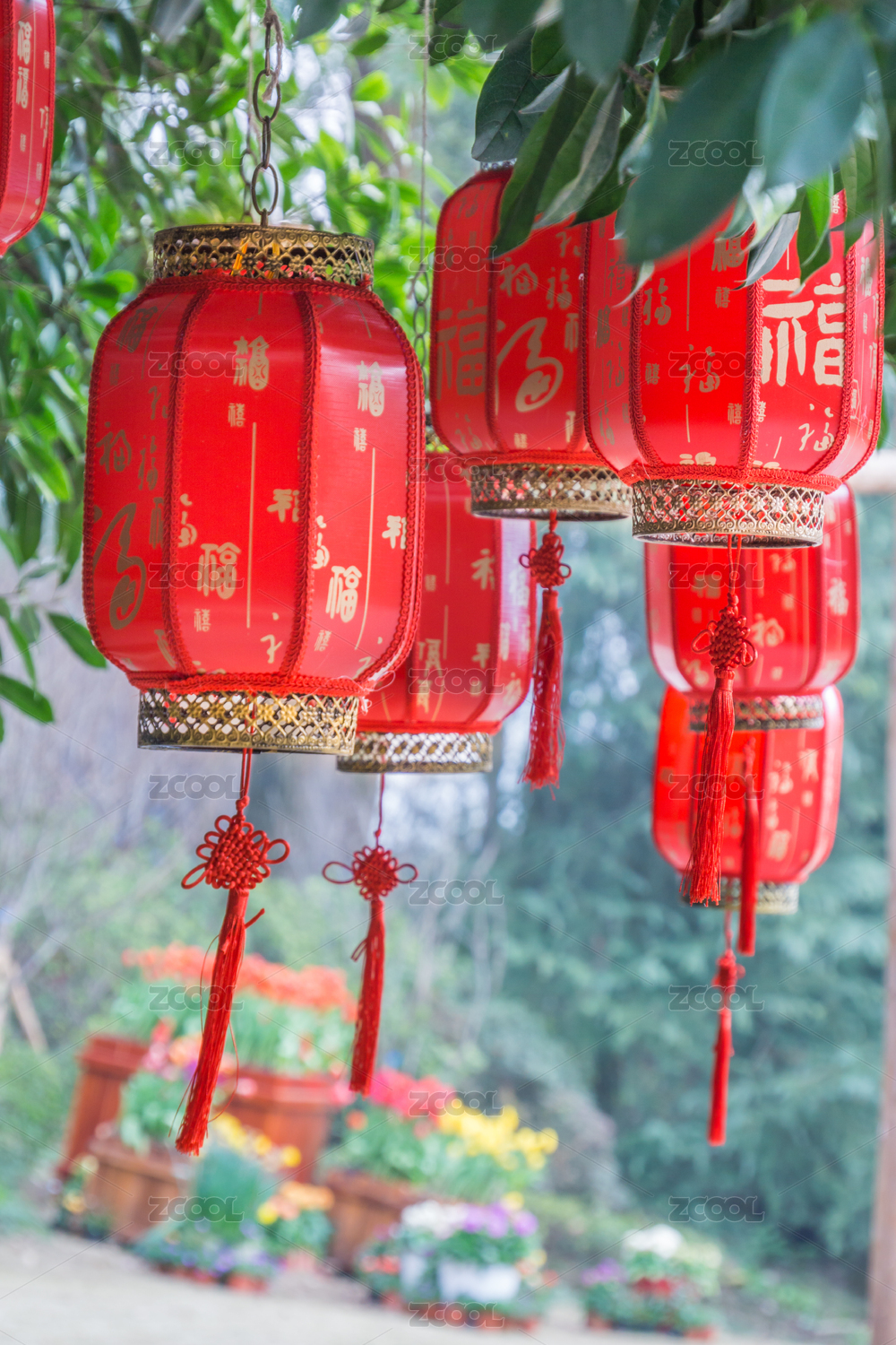 福建龙岩长汀县卧龙书院庭院中的红灯笼