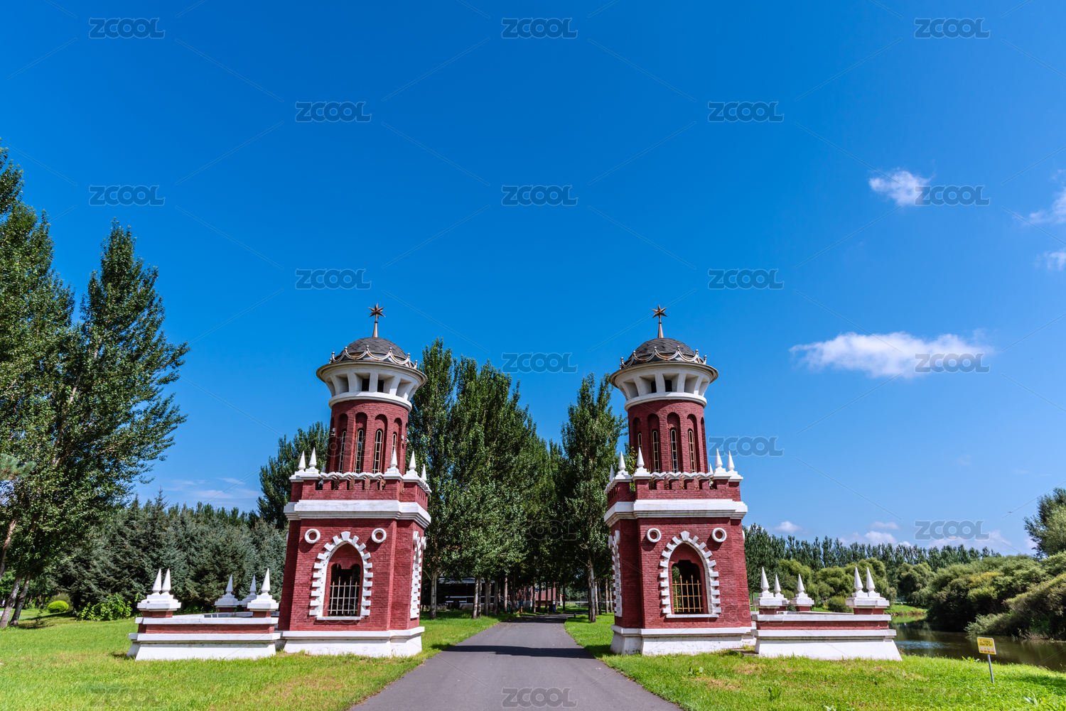 中国,黑龙江,哈尔滨,伏尔加庄园,白天,夏天,蓝天,天空,无人,庄园