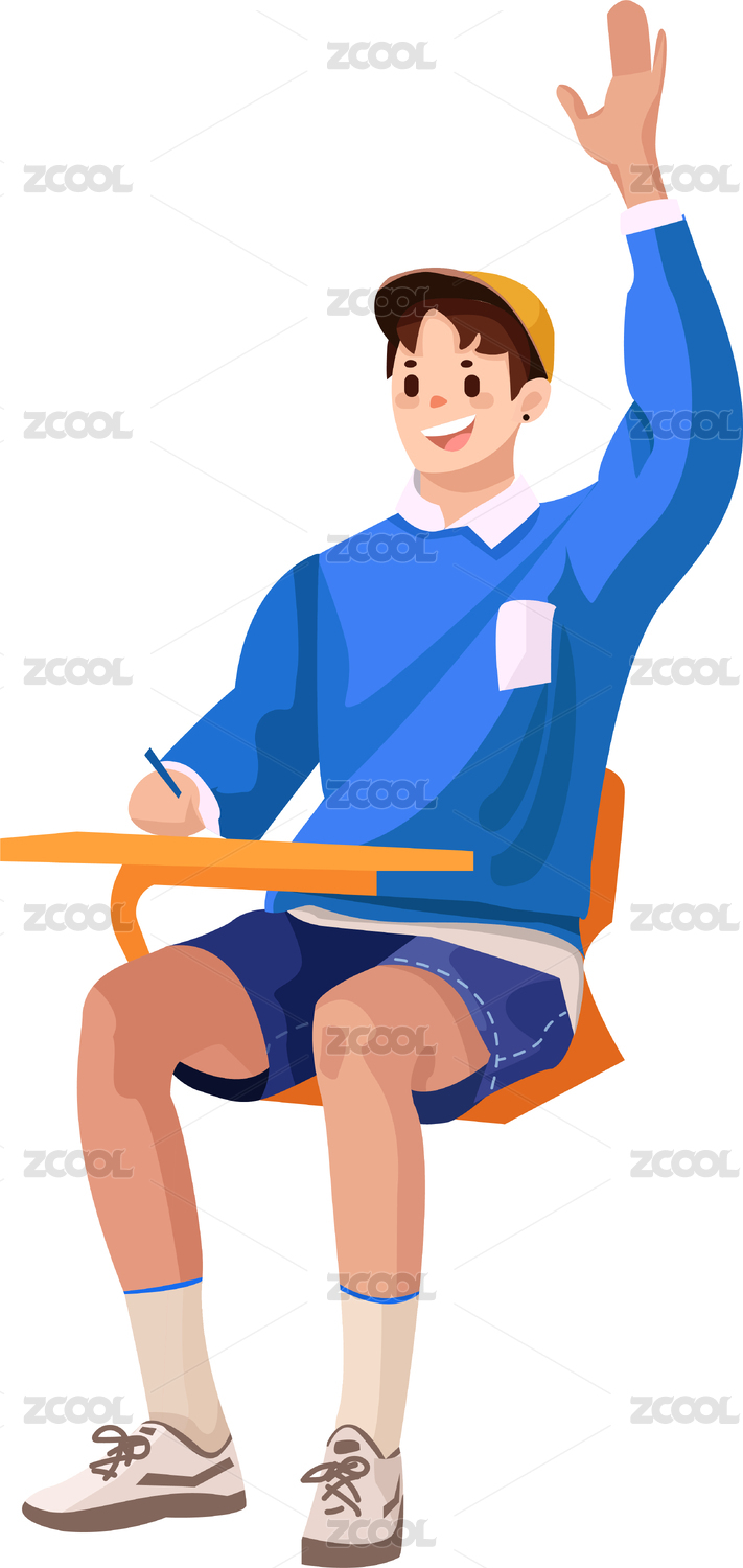 蓝色,扁平,插画,插图,黑板,男生,男孩,教室,学习,读书