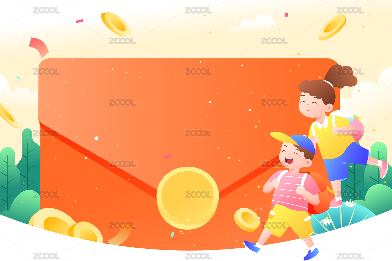 儿童教育红包活动矢量插画