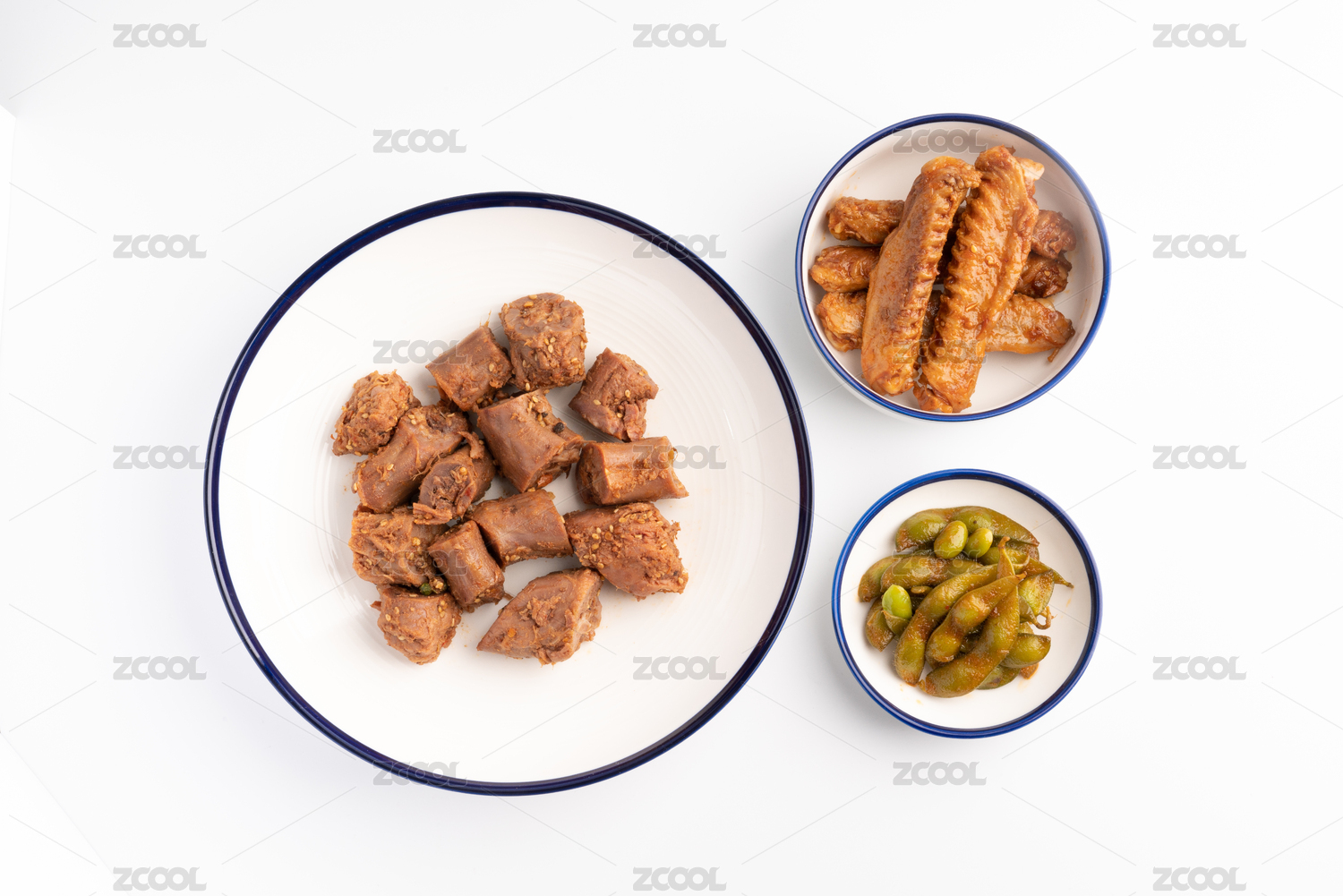 香辣卤味鸭脖、鸭翅膀和毛豆