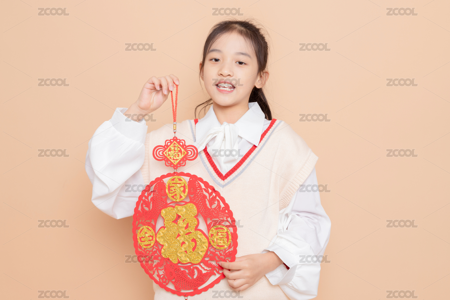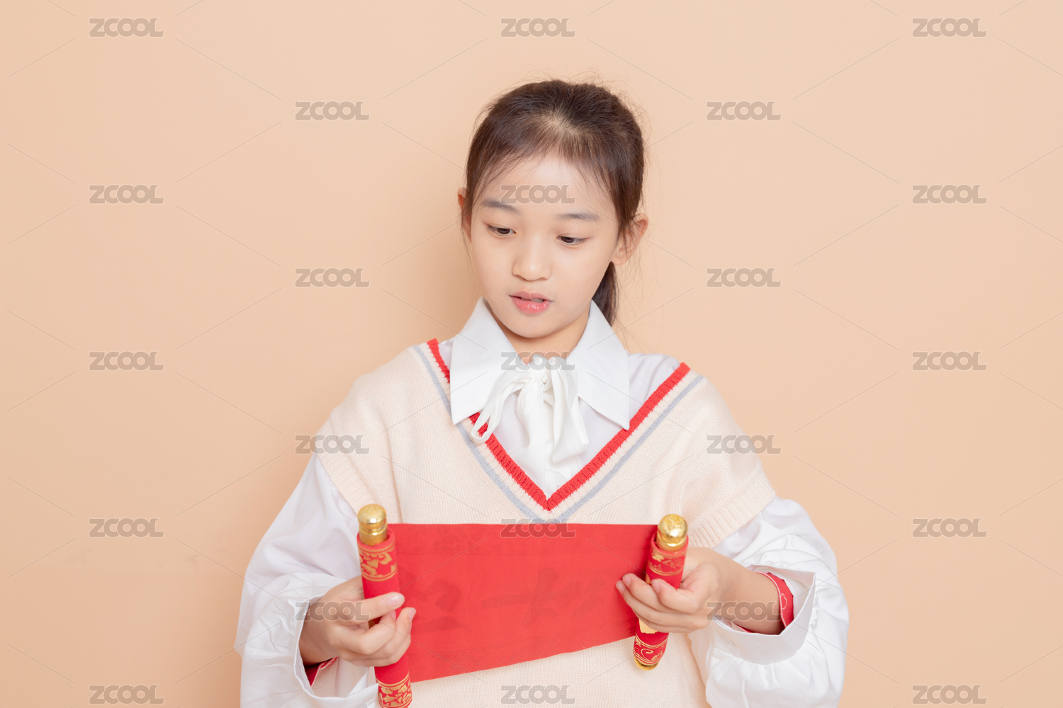 东方人,中国,黄种人,女孩,学生,衬衣,手持,条幅,横幅,红色