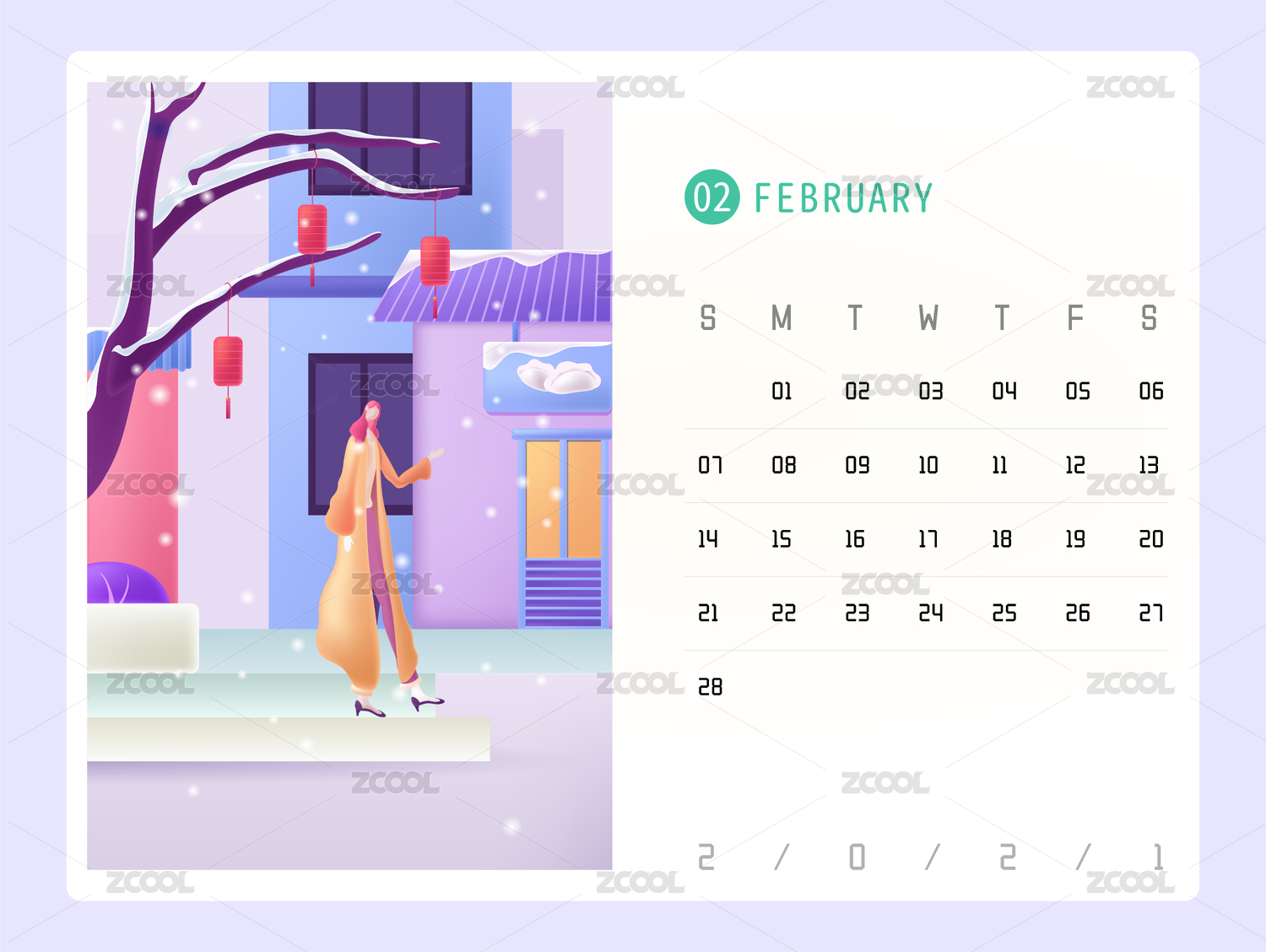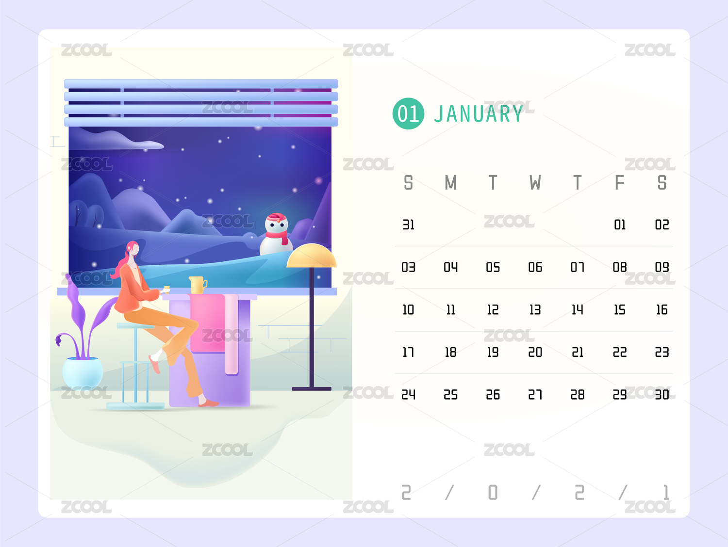 室内放在桌子上的台历在除夕这一天上画了个圈 手绘插画
