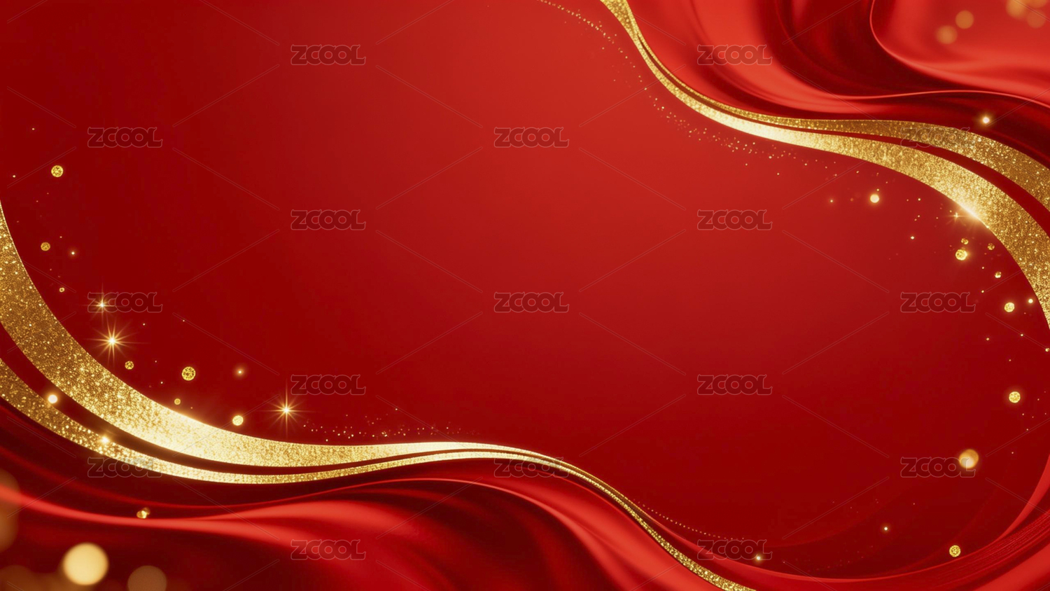 红色渐变背景金色线条和光点