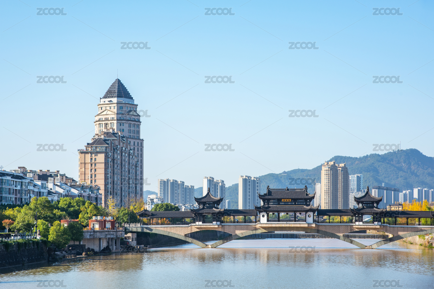 浙江杭州临安地标建筑金日廊桥