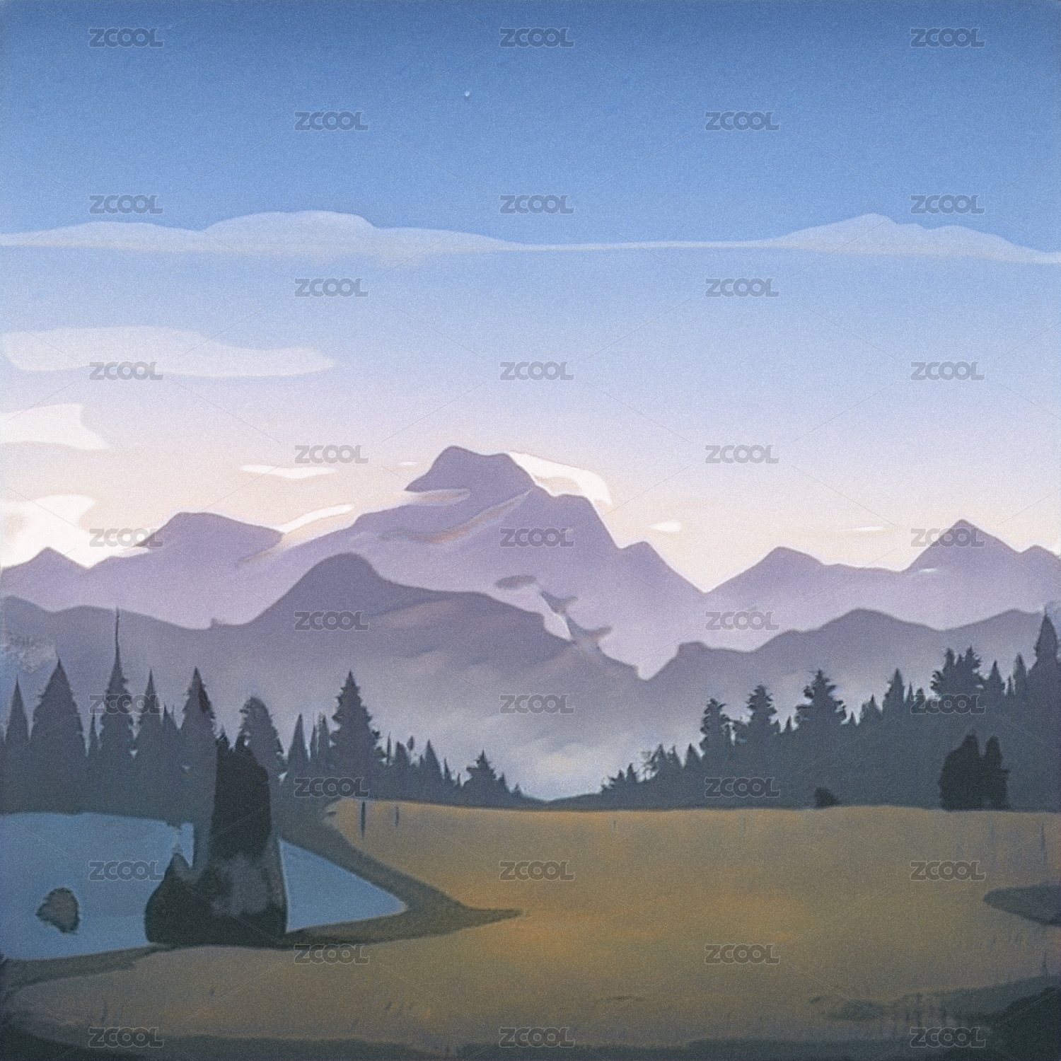 插画,风光,自然,天空,山脉,河流,河,大海,海洋,数目