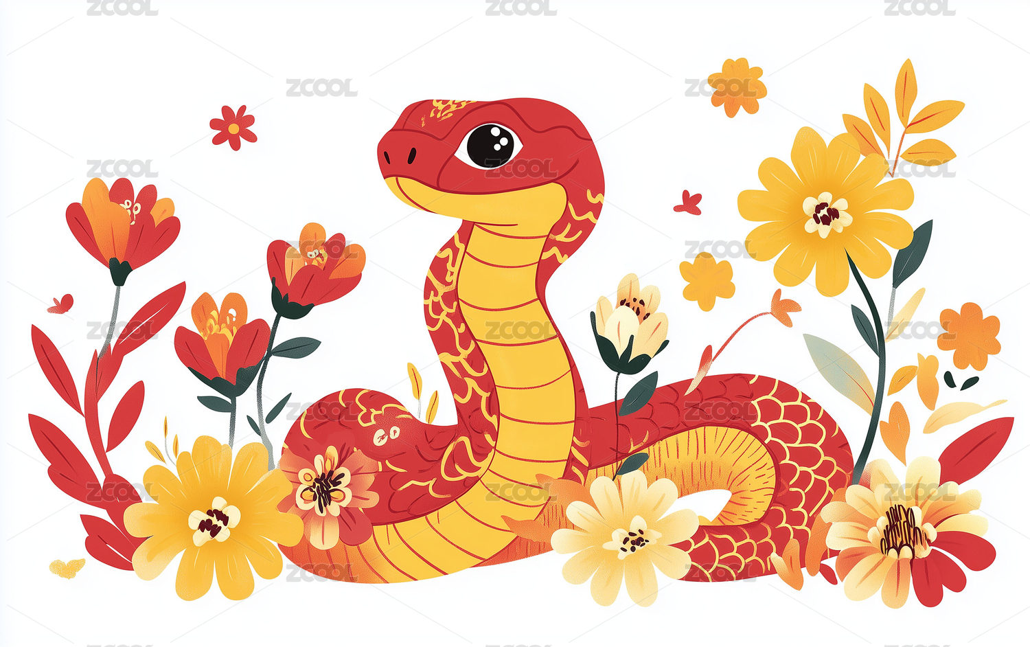 插画风格中国十二生肖蛇