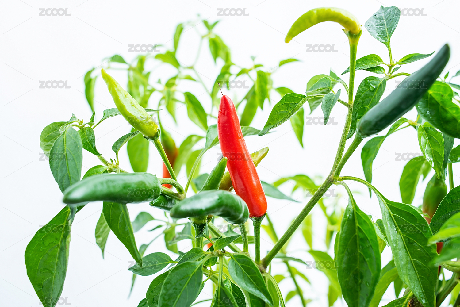 辣椒树上生长的小辣椒/大棚室内种植蔬菜