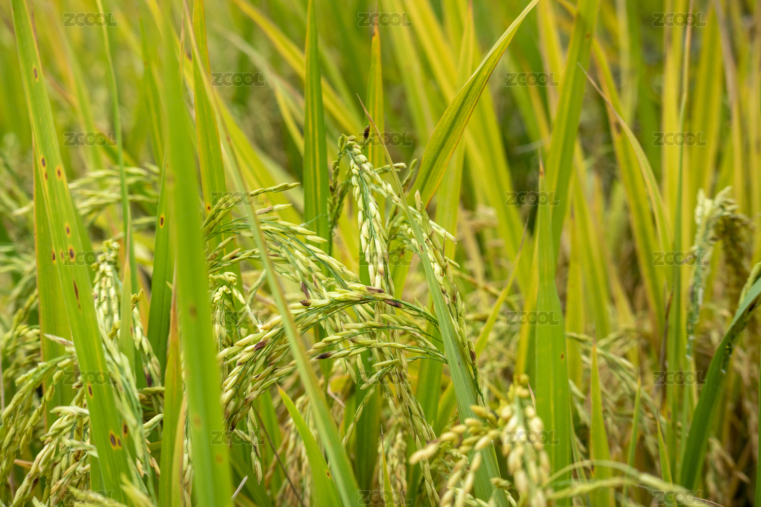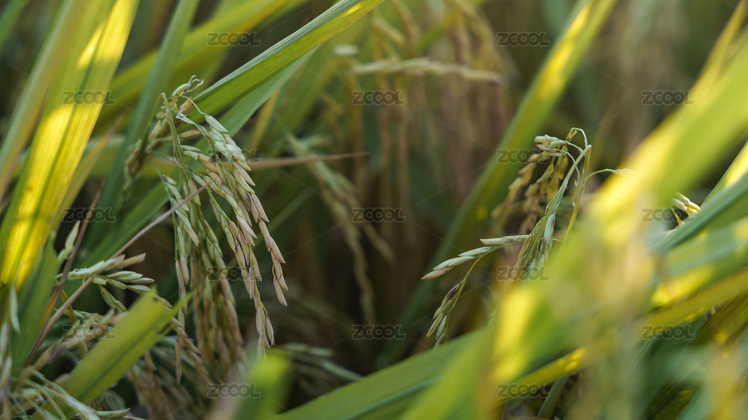 秋季丰收时节,金黄的稻穗上挂满稻谷垂下,