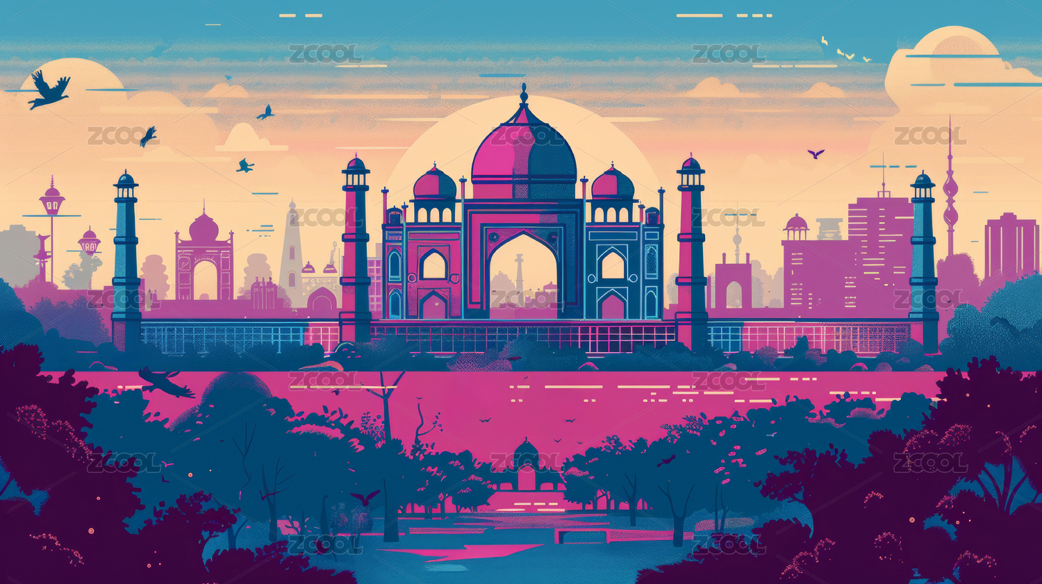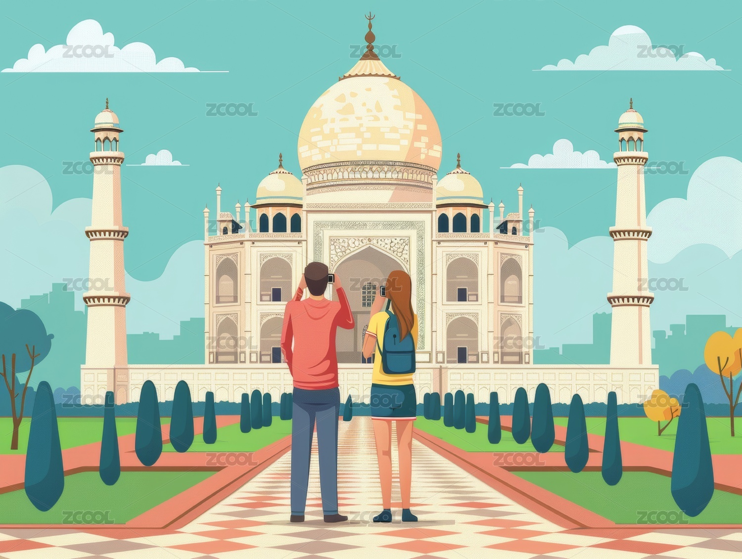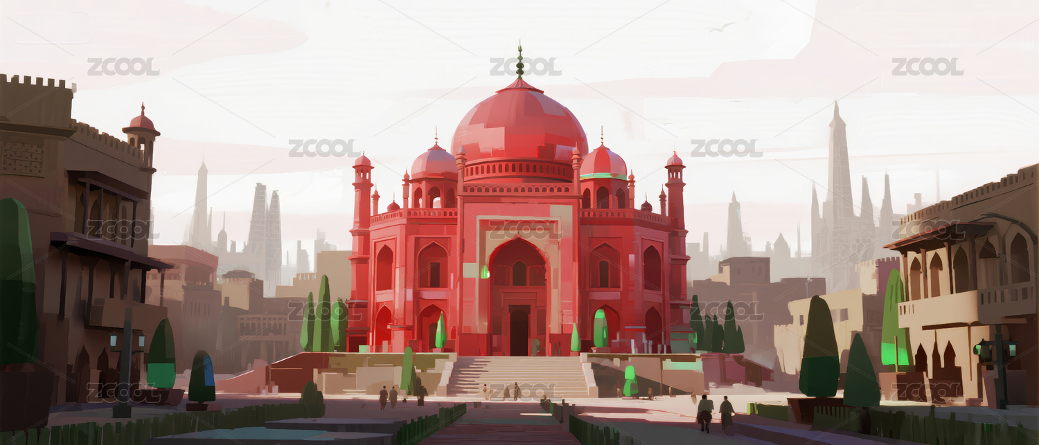 印度泰姬陵风景复古旅游海报