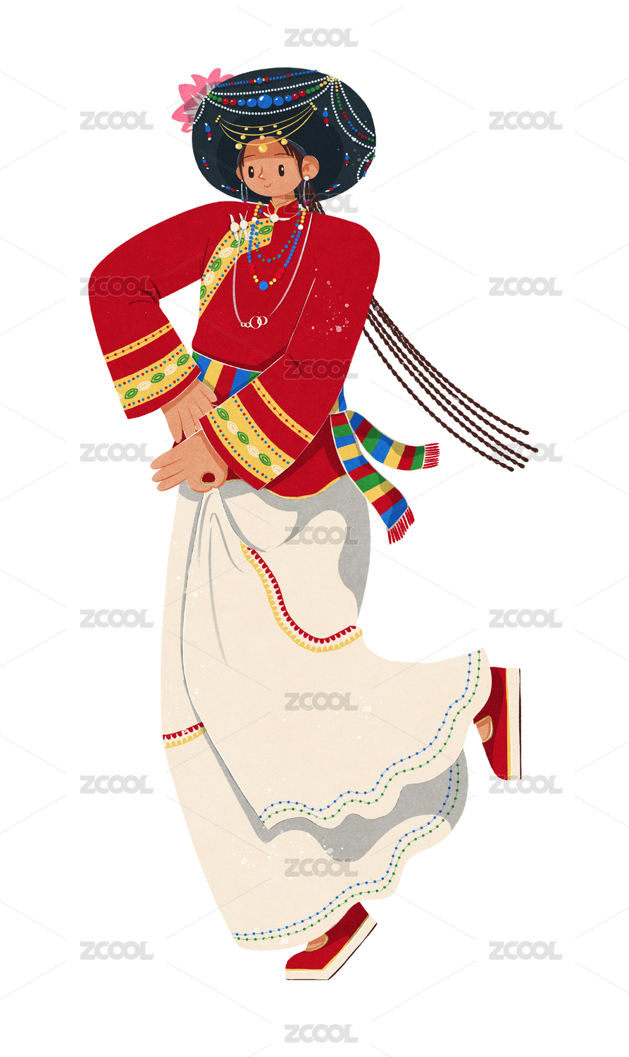 插画,卡通,扁平,少数民族,民族,传统文化,特色,黎族,海南,赤脚