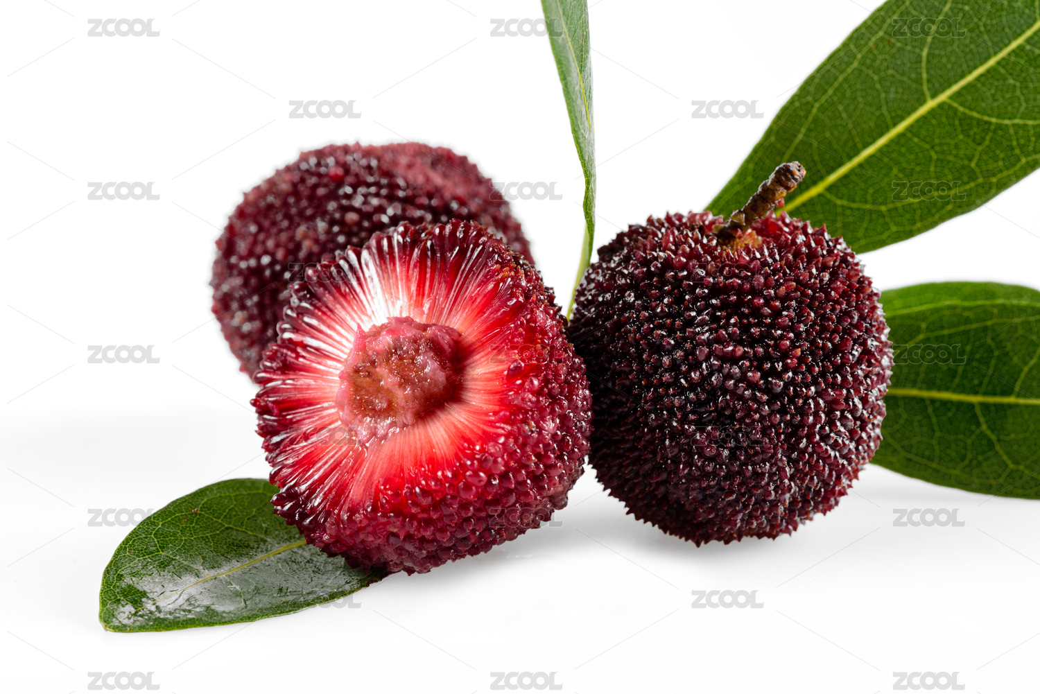 杨梅,水果,杨梅叶,绿叶,暗红色