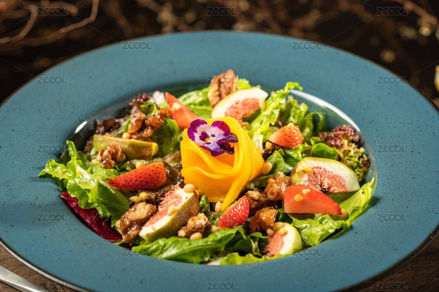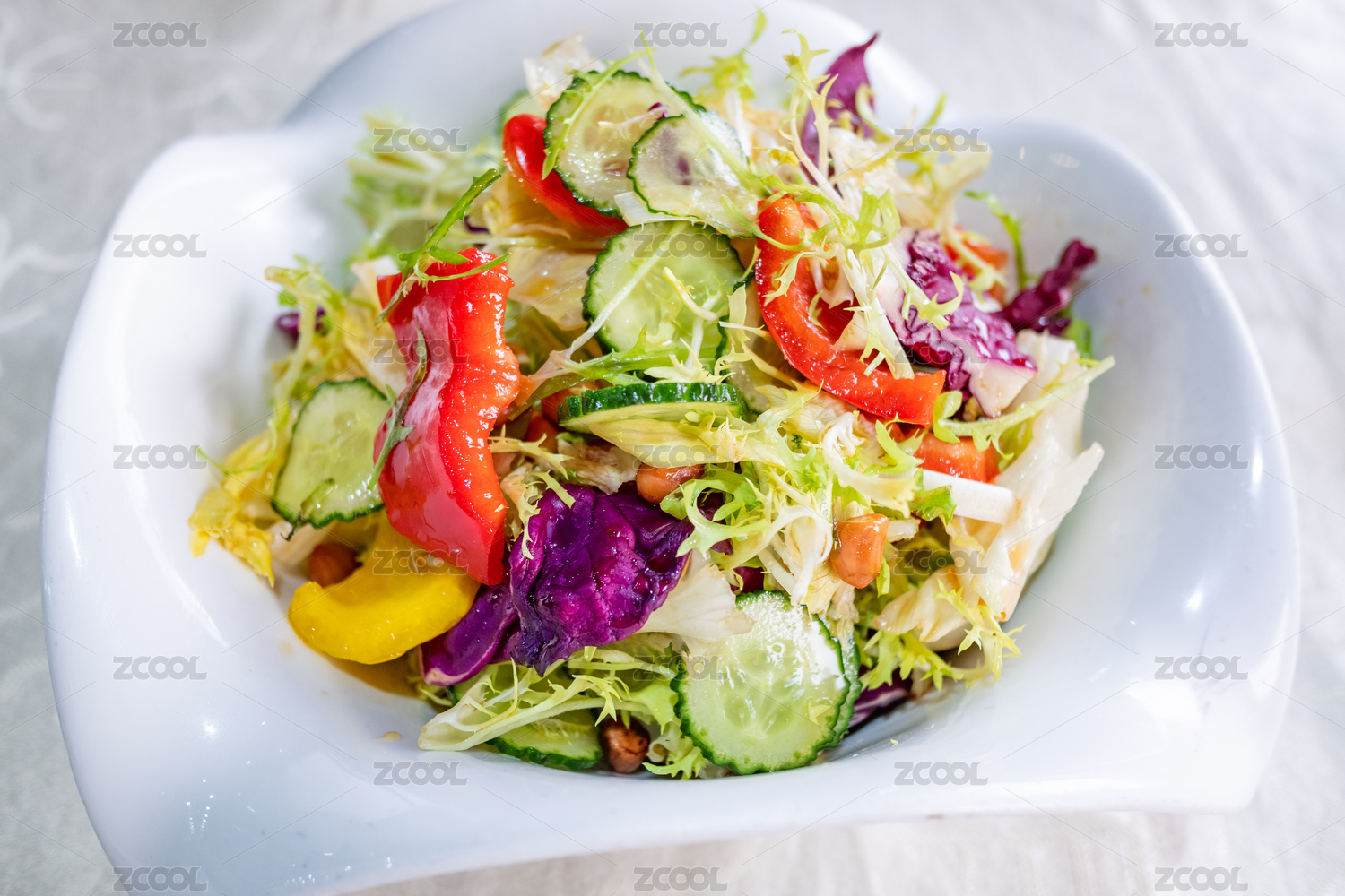 白色圆瓷盘装的芙蓉富贵拌时蔬