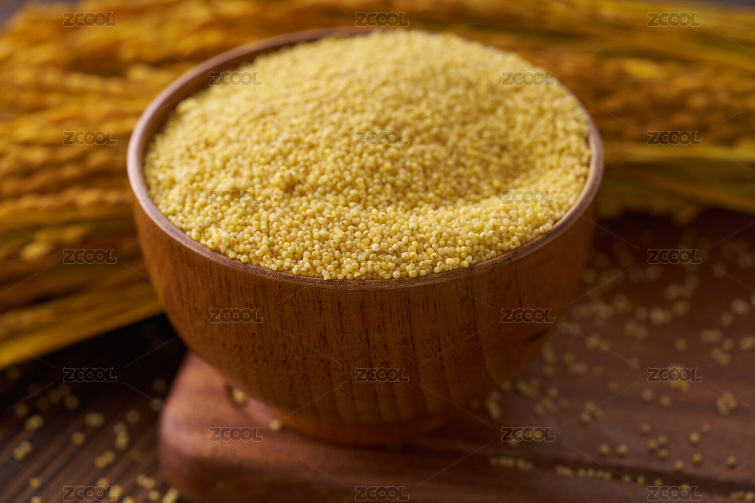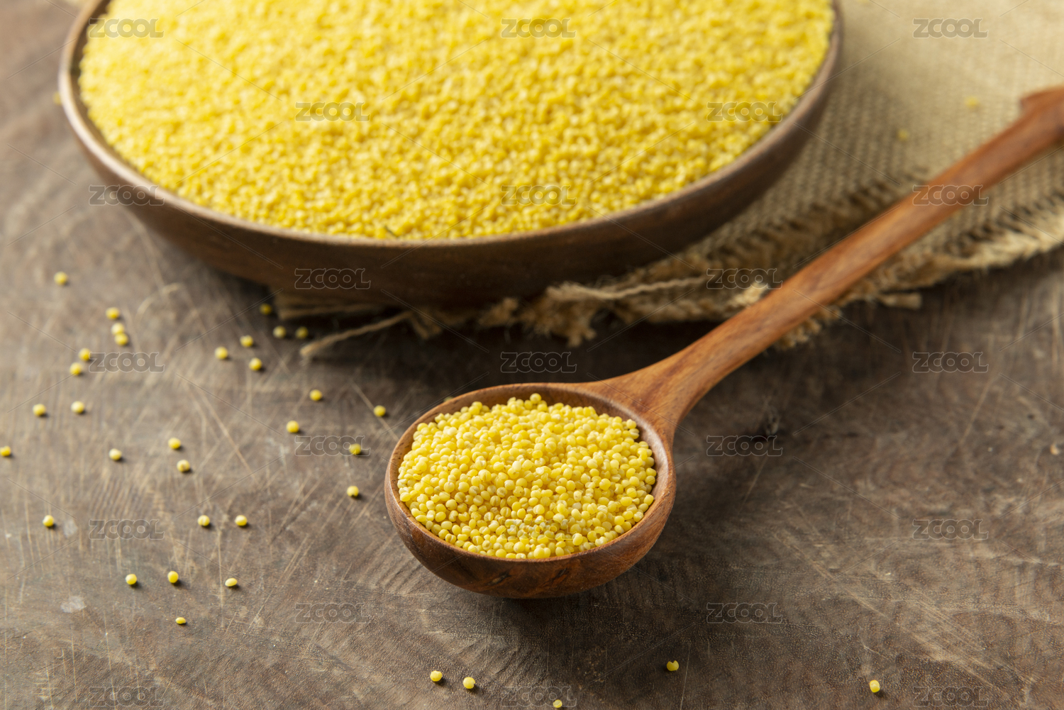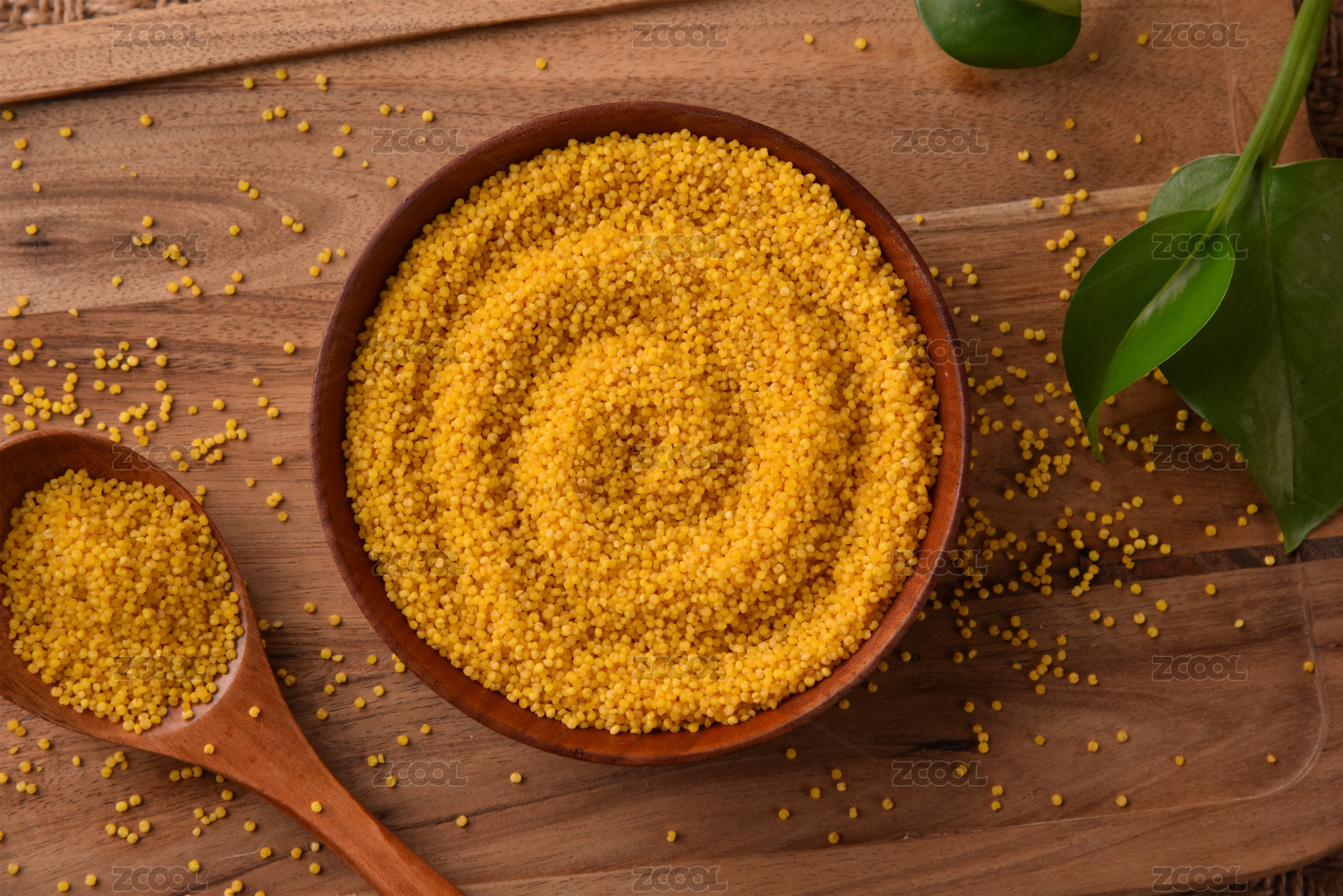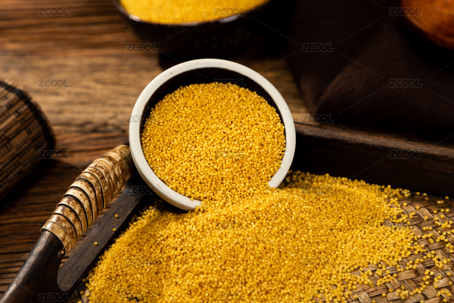 小米,黄小米,一盘小米,勺盛小米,倾倒小米,撒落小米,一盘黄小米,粮食,粗粮,杂粮