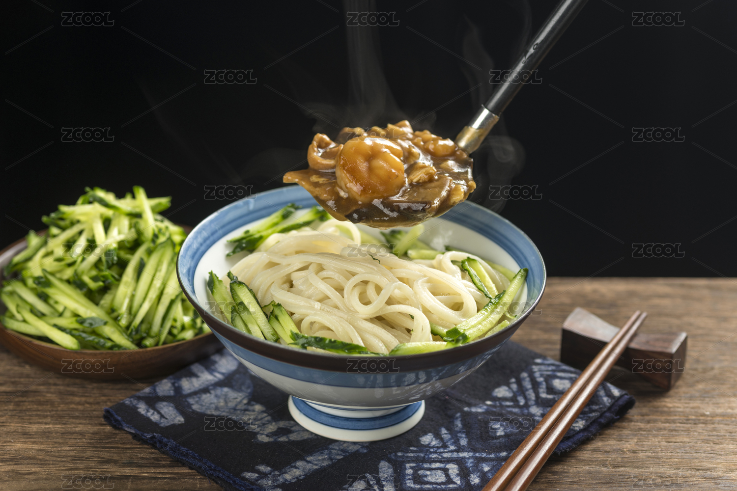 炸酱面,一碗炸酱面,传统面食,肉丁炸酱面,炸酱,面条,捞面,面,肉丁,一盘